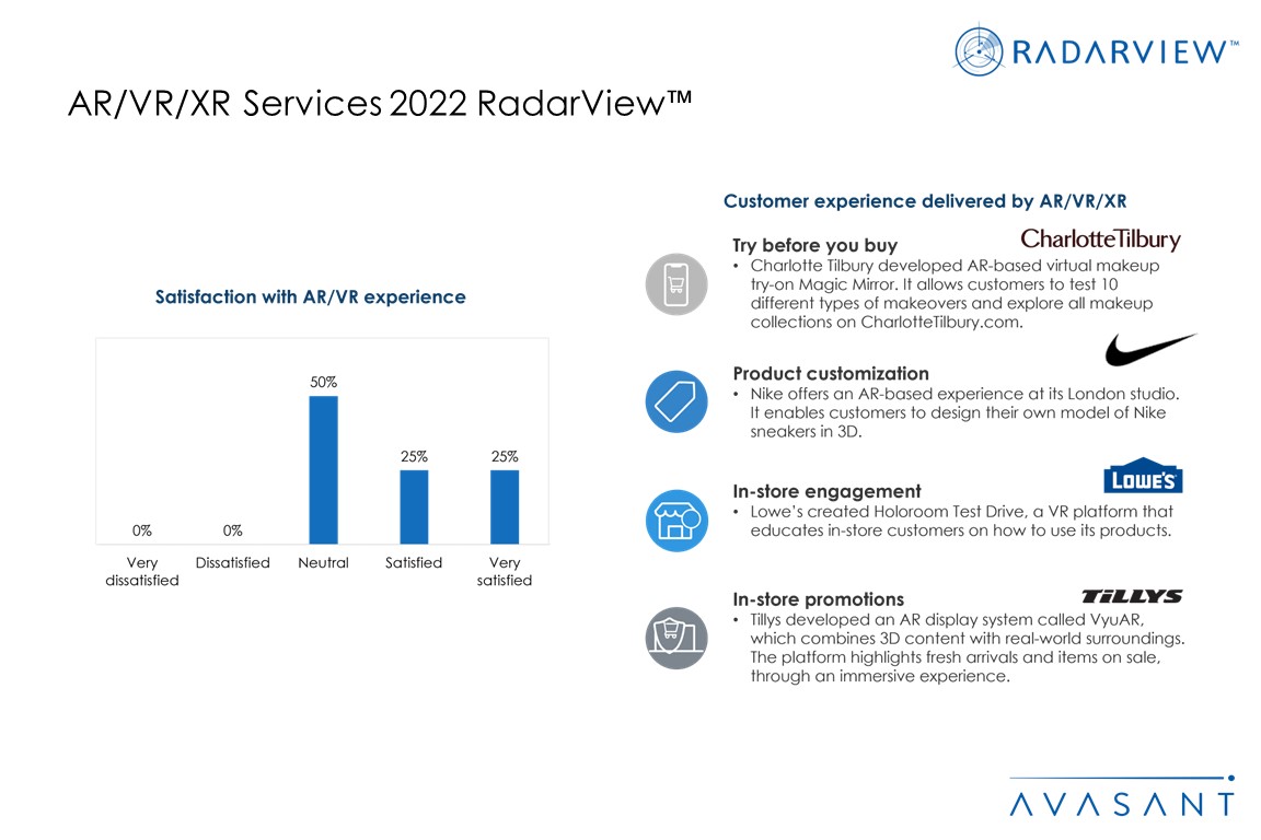 The report highlights key market trends in the AR/VR/XR space and Avasant’s viewpoint. It aids companies in identifying top service providers to assist them in implementing AR/VR/XR. It also offers an analysis of each service provider’s capabilities in technology and delivery support, enabling organizations to identify the right strategic partners for AR/VR/XR.