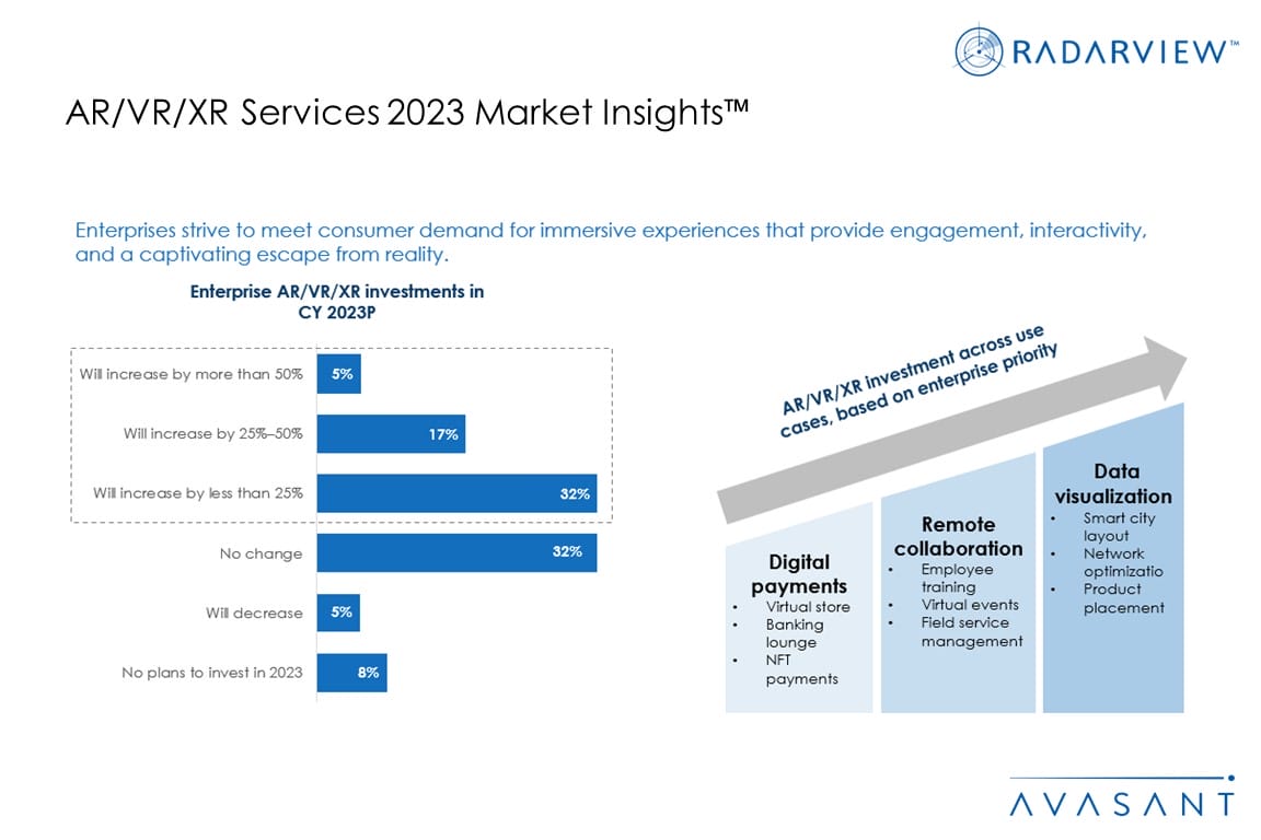 The increased enterprise interest in AR/VR/XR over the past year driven by the introduction of the metaverse has led to heightened conversations with service providers. Businesses sought to understand how these technologies could enhance their processes, improve productivity, and provide immersive experiences to their customers. Although the initial hype around the metaverse has subsided, organizations are now focusing on the practical applications and tangible benefits of these technologies in order to align their investments with their specific business needs and goals.