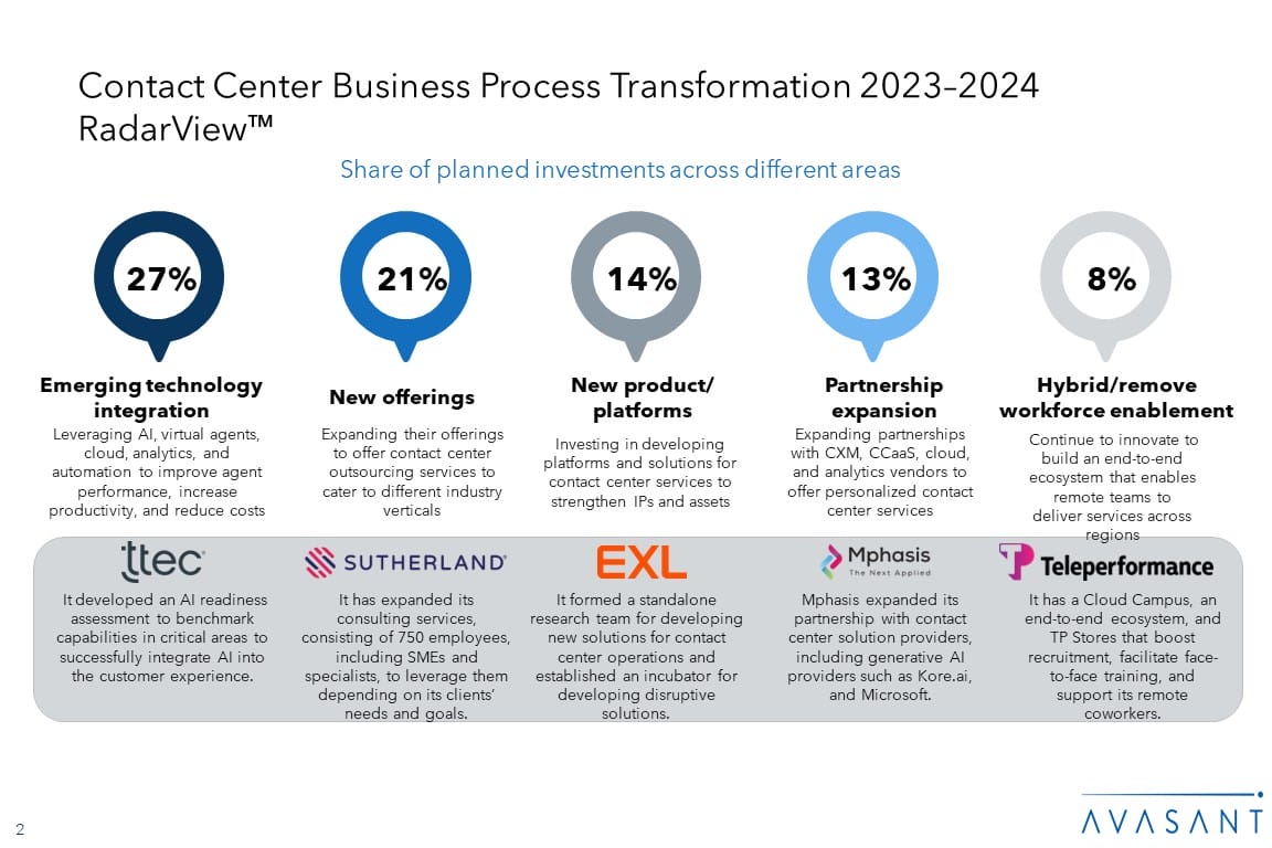 Please refer to Avasant’s Contact Center Business Process Transformation 2023-2024 Market Insights™ for detailed insights on the demand side trends.