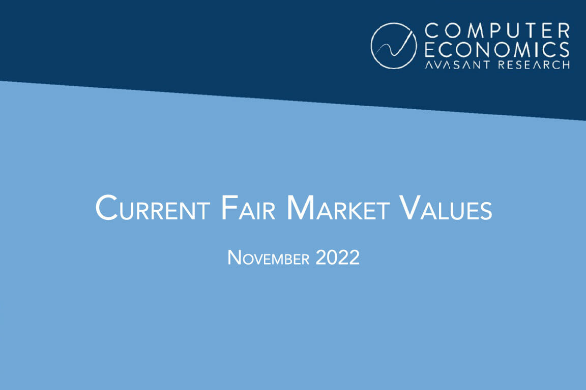 Our Fair Market Value (FMV) report provides data for the following categories of equipment: (1) IBM mainframe and midrange hardware and IBM peripherals; (2) Workstations, PCs, and servers from Compaq, Dell, HP, IBM/Lenovo, Lexmark, Okidata, Silicon Graphics, Sony, Sun, and Toshiba; (3) Network Communication gear from Cisco, Bay/Nortel, IBM, Intel, Lucent, and others. Fair Market Values are provided for end-user, wholesale, and orderly liquidation values (OLV) prices.