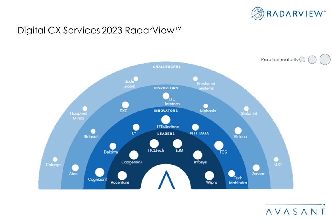 This RadarView includes a detailed analysis of the following digital CX services providers: Accenture, Atos, Birlasoft, Capgemini, Coforge, Cognizant, Deloitte, DXC, EY, HCLTech, Happiest Minds, IBM, Infosys, ITC Infotech, Jade Global, LTIMindtree, Mphasis, NTT DATA, Persistent Systems, Stefanini, TCS, Tech Mahindra, UST, Virtusa, Wipro, and Zensar.