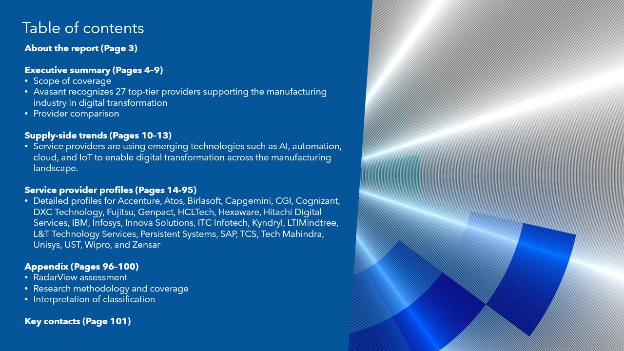 The industry insights presented in this report are based on the following: our ongoing interactions with enterprise CXOs and other key executives; targeted discussions with service providers, subject matter experts, and Avasant Fellows; analyst insights from primary and secondary research; and lessons learned from consulting engagements.