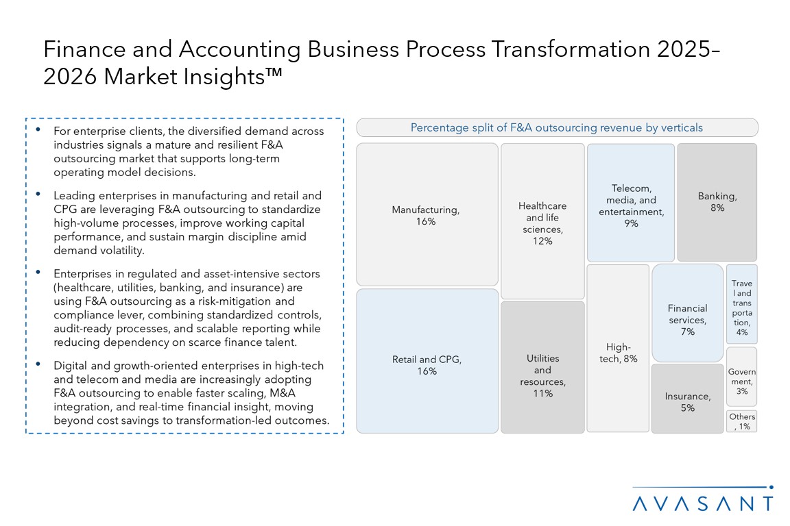 The F&A outsourcing industry is evolving as enterprises increasingly prioritize sector-specific expertise, regulatory alignment, and scalable delivery models over traditional, one-size-fits-all approaches. The growing adoption of GCCs and external partners reflects enterprises’ efforts in reducing fixed costs while retaining strategic control and analytics capabilities.