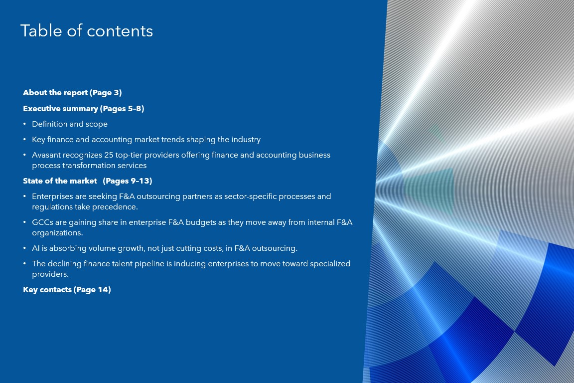 Read the Research Byte based on this report. Please refer to Avasant’s Finance and Accounting Business Process Transformation 2025–2026 RadarView™ for detailed insights on the service providers and supply-side trends.