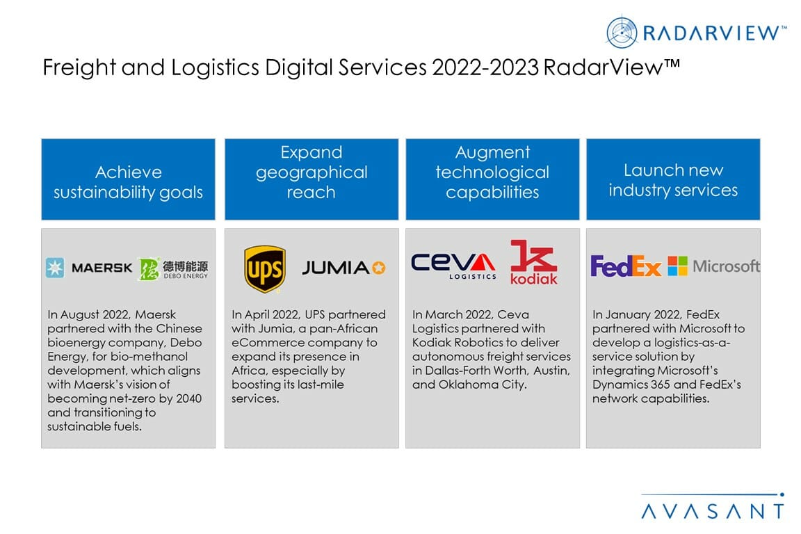 The freight and logistics industry is seeing accelerated demand since the pandemic, and the market outlook remains strong, augmented by the eCommerce boom and altered customer expectations. However, enterprises are identifying new avenues for growth through digitalization and entering partnerships to offset operational costs with process efficiencies.