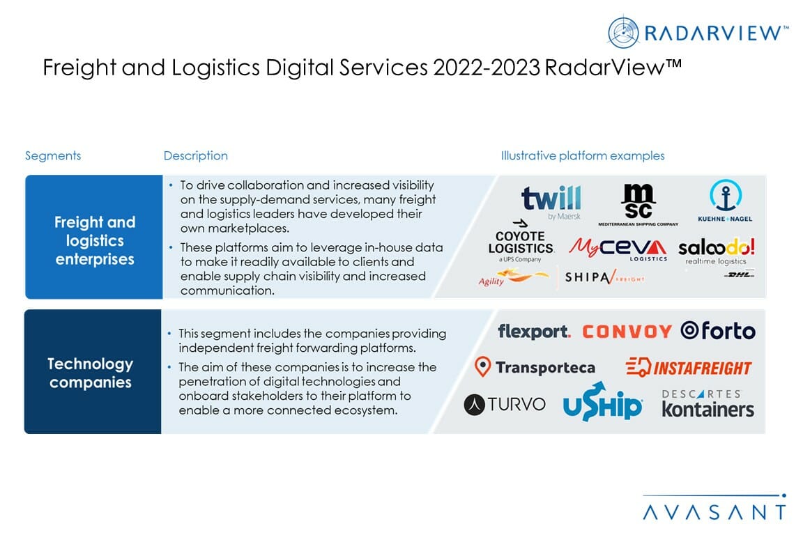 This RadarView includes an analysis of the following service providers in the freight and logistics digital services space: Accenture, Atos, CGI, Cognizant, HCL, IBM, Infosys, TCS, Tech Mahindra, Unisys, Virtusa, and Wipro.