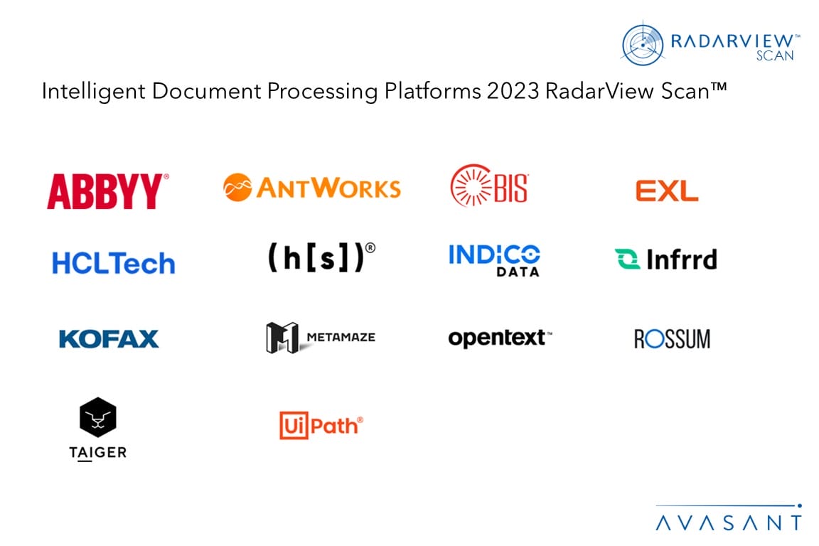 This RadarView Scan includes an analysis of ABBYY, AntWorks, BIS, EXL, HCLTech, Hyperscience, Infrrd, Indico Data, Kofax, Metamaze, OpenText, Rossum, and Taiger.