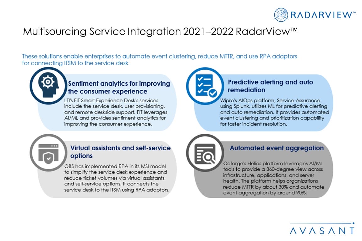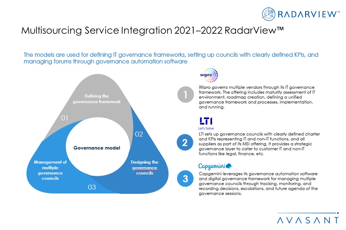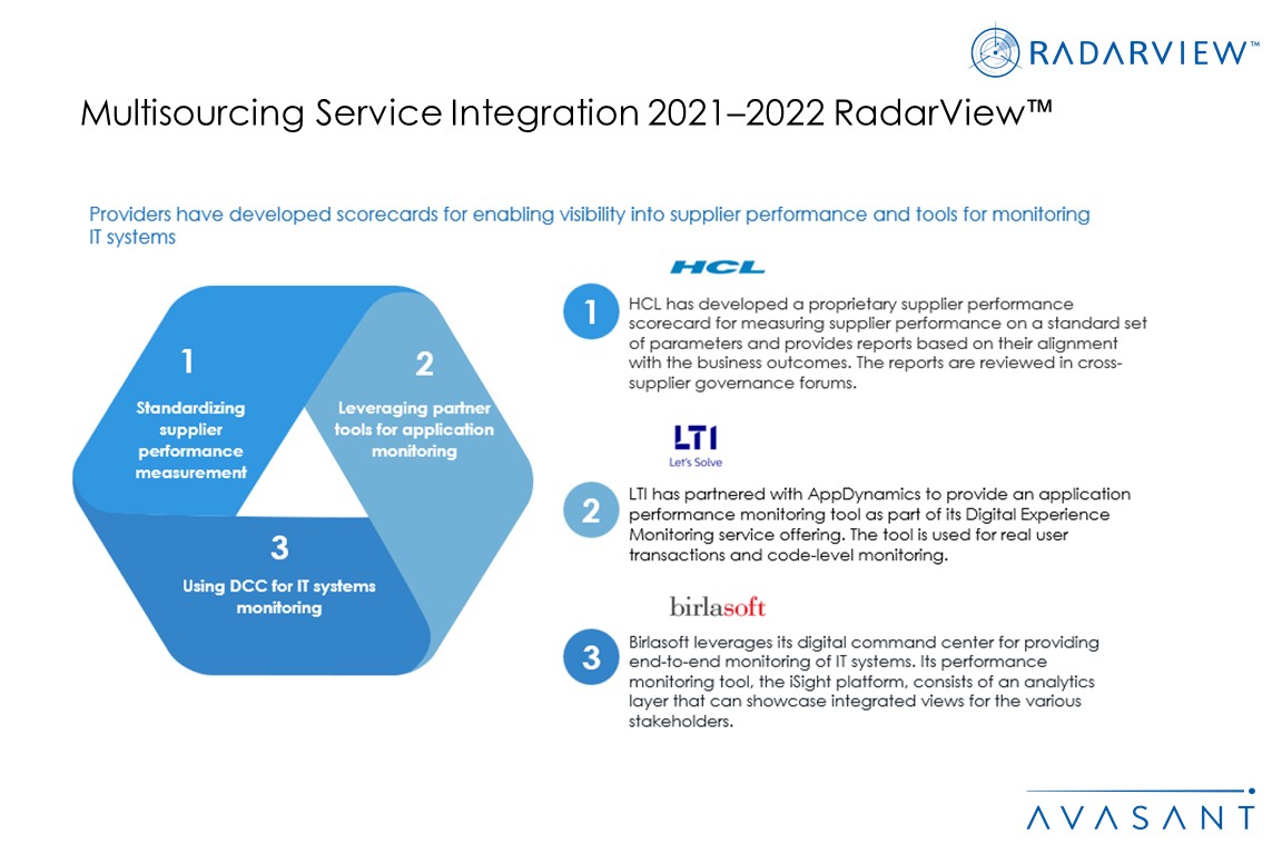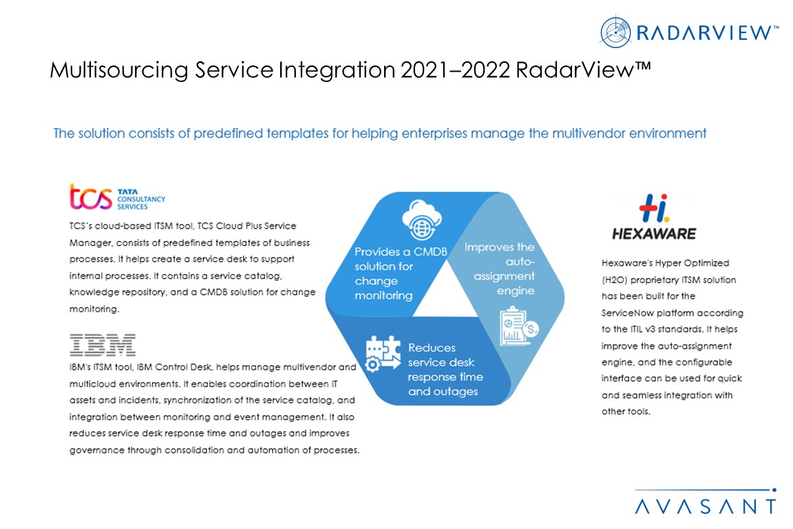 The Multisourcing Service Integration 2021–2022 RadarView™ highlights key market trends in the MSI space and Avasant’s viewpoint. It aids companies in identifying top service providers to assist them in adopting MSI. It also offers an analysis of each service provider’s capabilities in technology and delivery support, enabling organizations to identify the right strategic partners for MSI.
