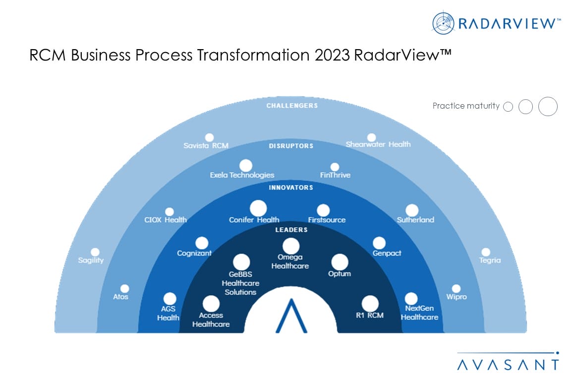 The RCM Business Process Transformation 2023 RadarView™ highlights key supply-side trends in the RCM services space and Avasant’s viewpoint on them. It aids companies in identifying top service providers to assist them in outsourcing RCM services. It also analyzes each service provider’s technology and delivery support capabilities, enabling organizations to identify the right strategic partners for RCM services.