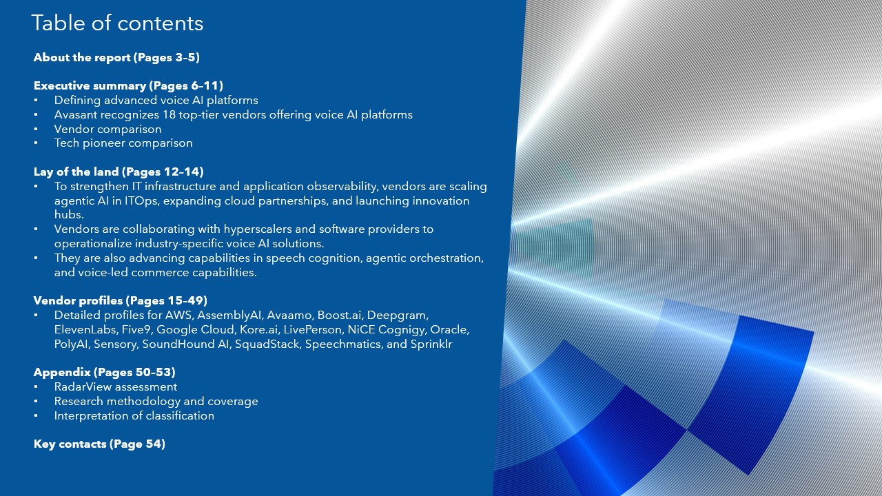 Read the Research Byte based on this report. Please refer to Avasant’s Advanced Voice AI Platforms 2026 Market Insights™ for detailed insights on the enterprises and demand-side trends.