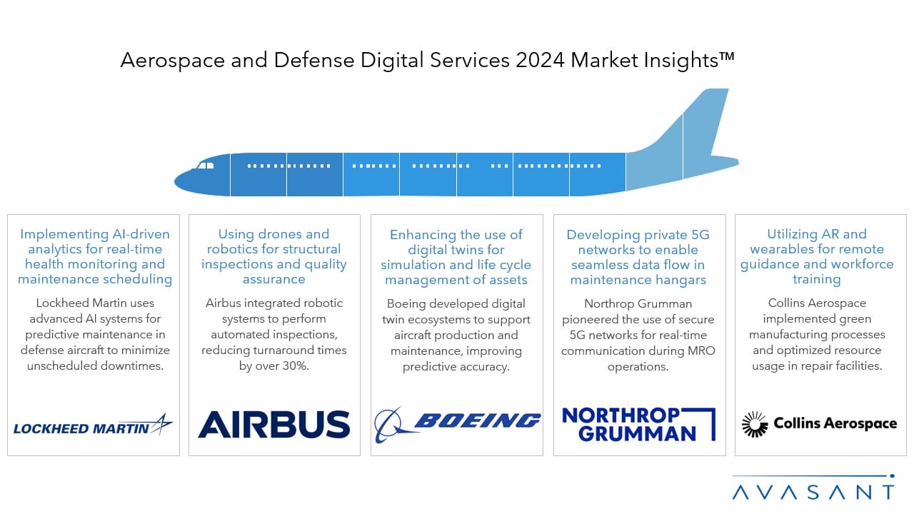 Aerospace and Defense enterprises are responding to industry demands by advancing sustainable aviation through R&D in cleaner propulsion systems and adopting zero-emissions technologies such as hydrogen-powered engines. They are enhancing supply chain resilience using AI, blockchain, and digital threads while integrating predictive analytics and reshoring strategies to address geopolitical risks. Additionally, they are investing in advanced cybersecurity frameworks, generative AI, and quantum computing for innovation and operational efficiency while modernizing their workforce with AR/VR and AI-driven training to address the skills shortage. Aerospace and Defense companies collaborate with service providers for digital transformation, which requires strong technological expertise and delivery capabilities.