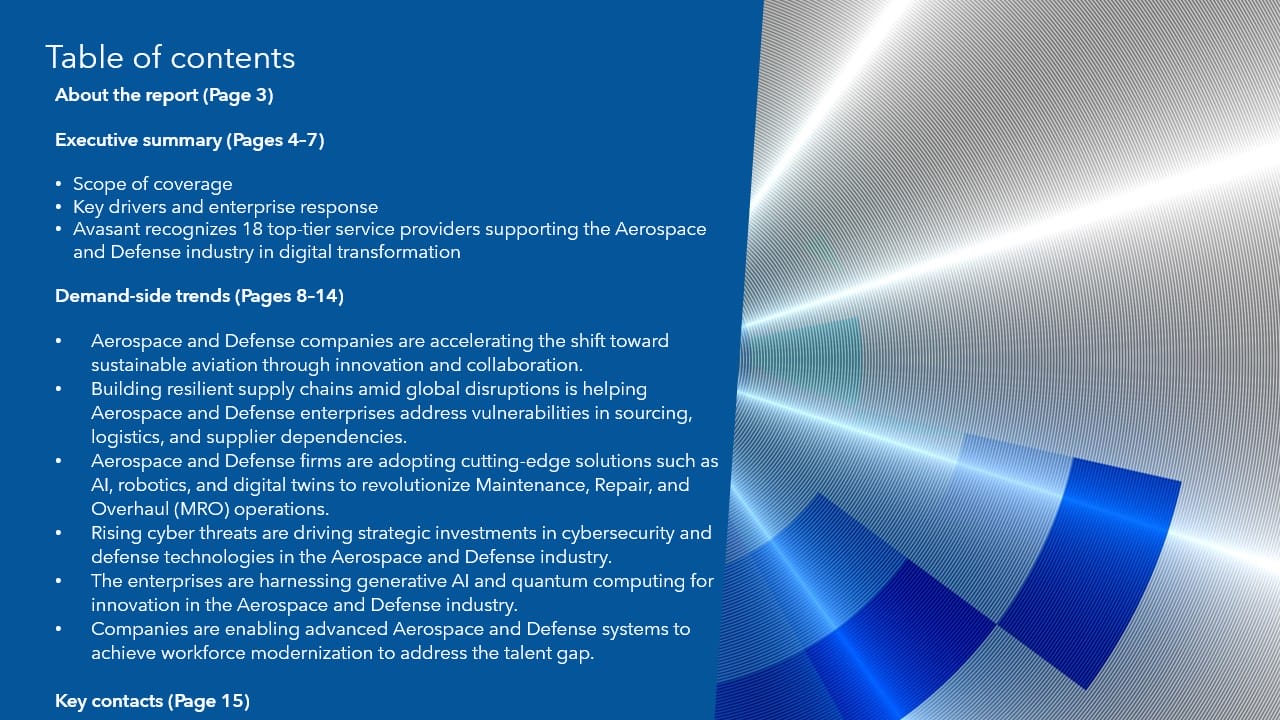 Read the Research Byte based on this report. Please refer to Avasant’s Aerospace and Defense Digital Services 2024 RadarView™ for detailed insights on the service providers and supply-side trends.
