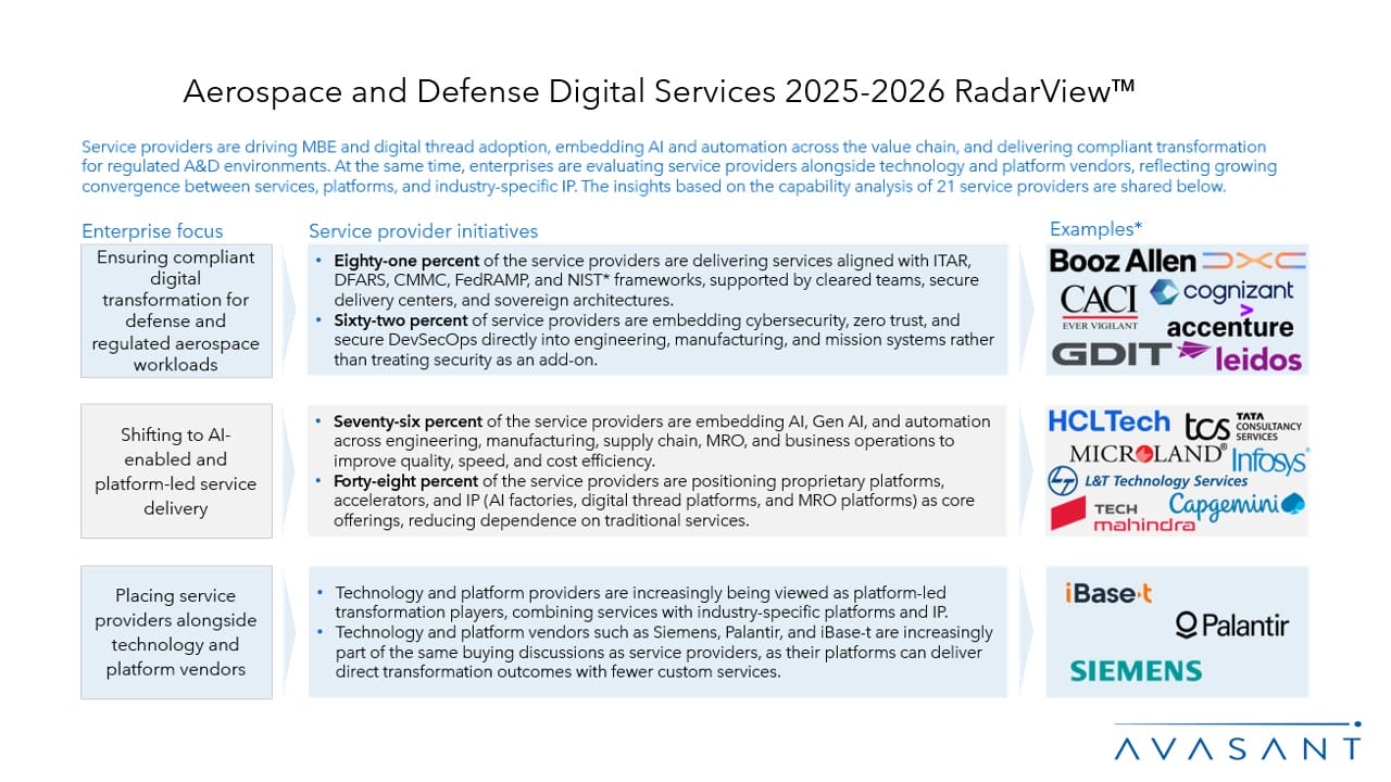 Read the Research Byte based on this report. Please refer to Avasant’s Aerospace and Defense Digital Services 2025-2026 Market Insights™ for demand-side trends.