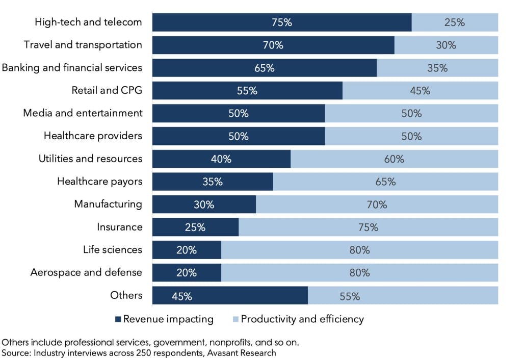 New product features as a service: This model is predominantly prevalent among high-tech companies known for their willingness to embrace risk and their understanding that innovation is essential to remain competitive in a rapidly evolving technological environment. These companies have more quickly derived financial gains from generative AI than their counterparts in other industries.