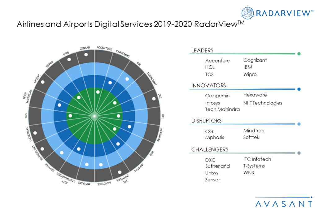 The Airlines and Airports Digital Services 2019-2020 RadarView Report highlights the key trends in the market and Avasant’s view on the road ahead for Airlines and Airports over the next 18-24 months. It addresses the need of enterprises to understand the right action points to navigate through the headwinds and gain competitive advantage. It also identifies the key global service providers and system integrators that can help enterprises in business transformation.