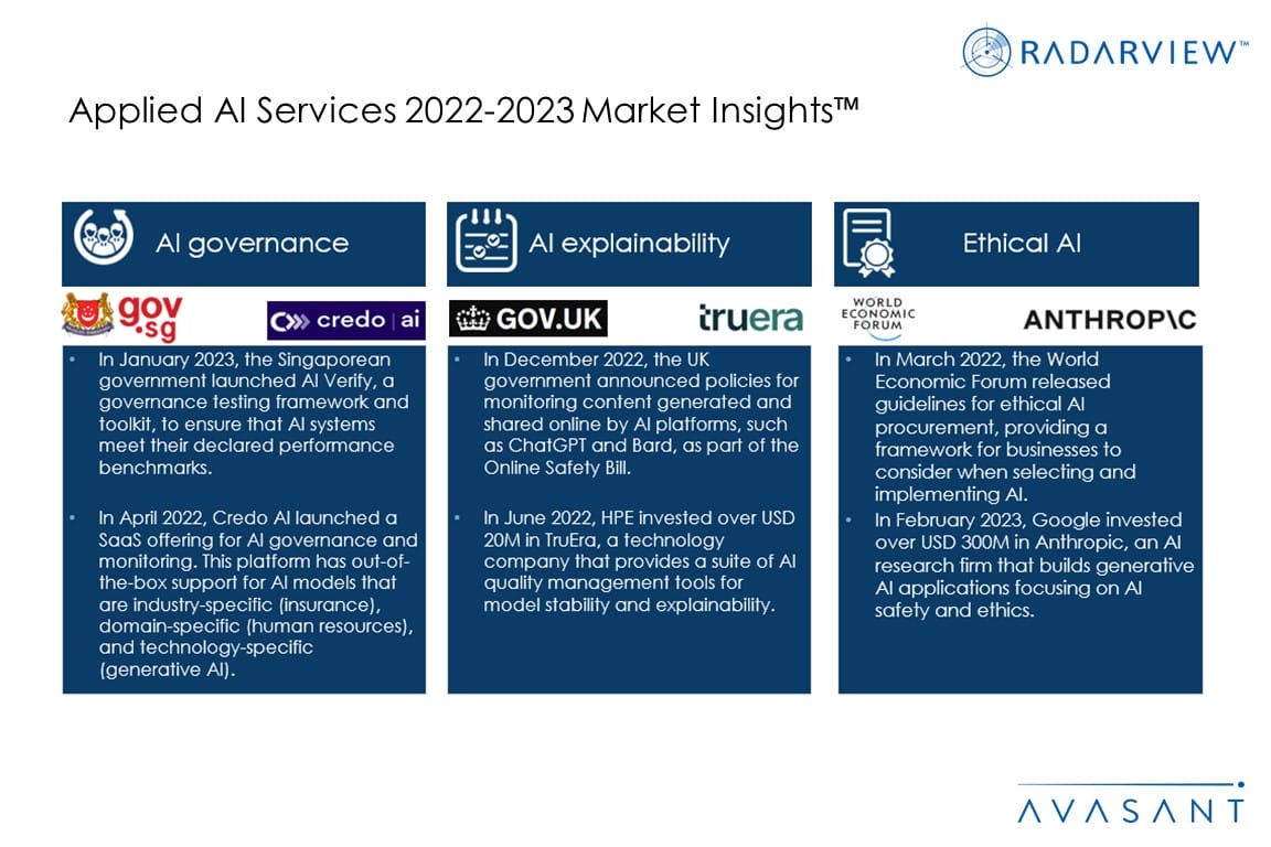 Please refer to Avasant’s Applied AI Services 2022–2023 RadarView™ for detailed insights on the service providers and supply-side trends.