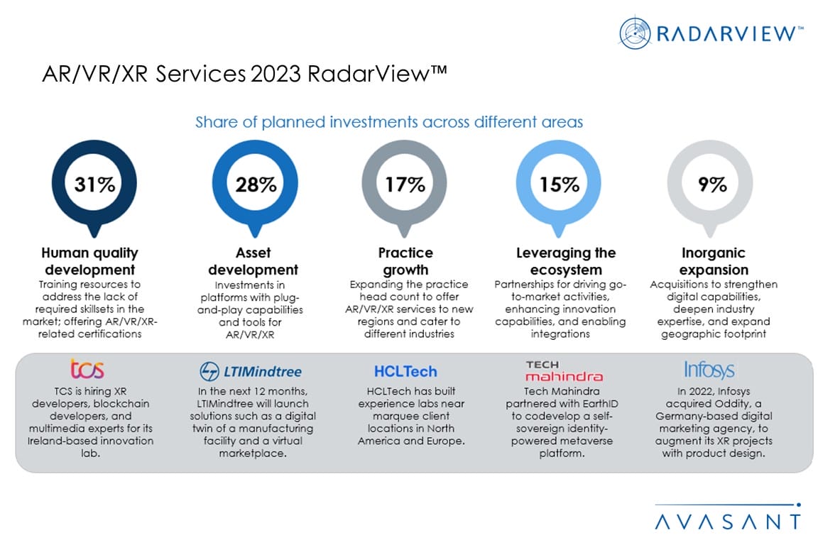 • Providers are equally investing in both human and technological assets to scale their AR/VR/XR practice.