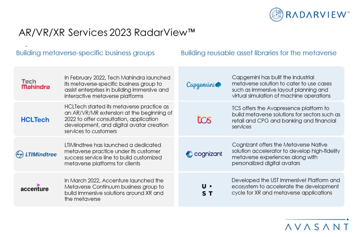 Please refer to Avasant’s AR/VR/XR Services 2023 Market Insights™ for detailed insights on the enterprises and demand-side trends.