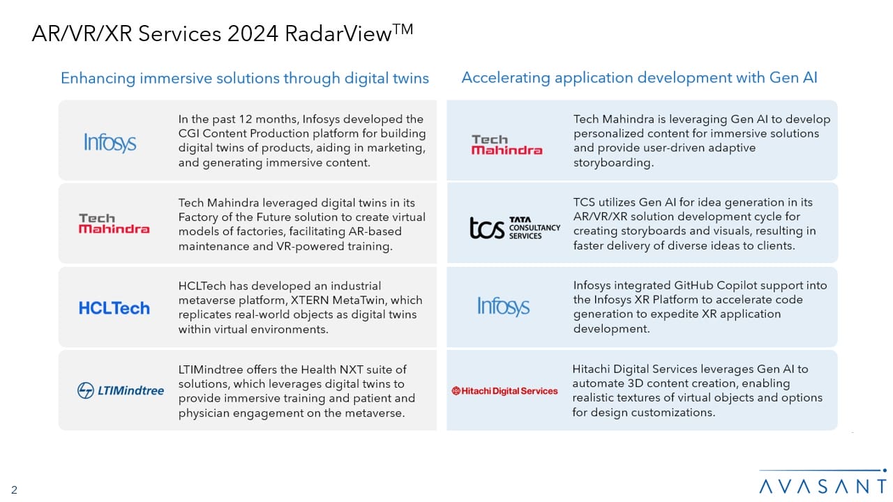 Please refer to Avasant’s AR/VR/XR Services 2024 Market Insights™ for detailed insights on the enterprises and demand-side trends.
