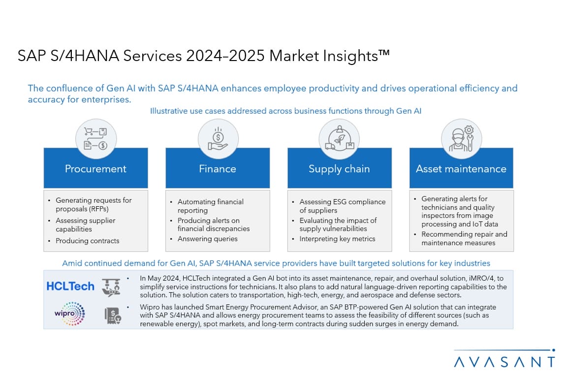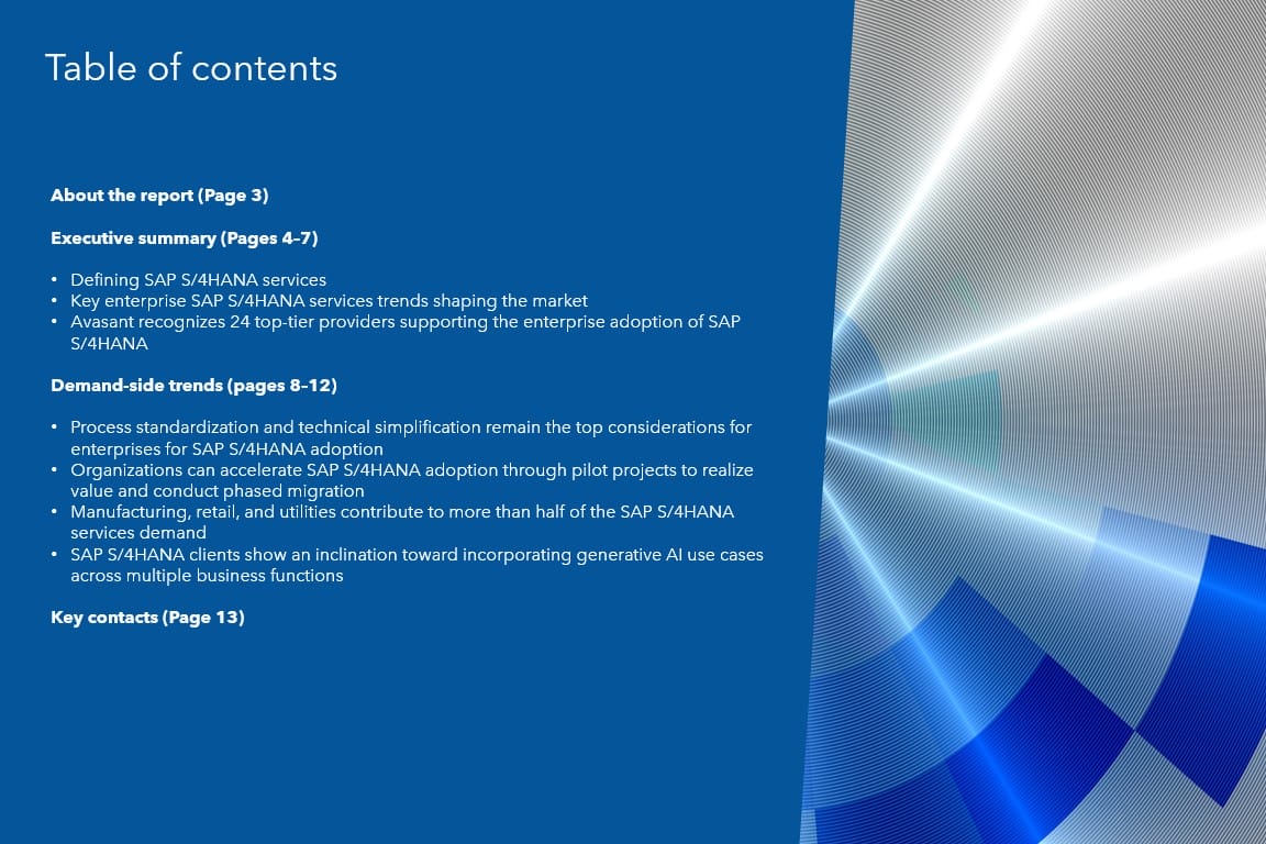 Please refer to Avasant’s SAP S/4HANA Services 2024–2025 RadarView™ for detailed insights on the service providers and supply-side trends.