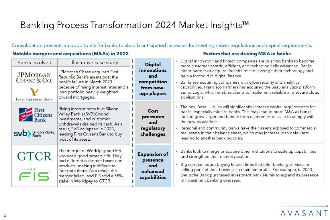 The Banking Process Transformation 2024 Market Insights™ provides a view into important market trends and developments to help build a granular understanding of the banking process transformation ecosystem.