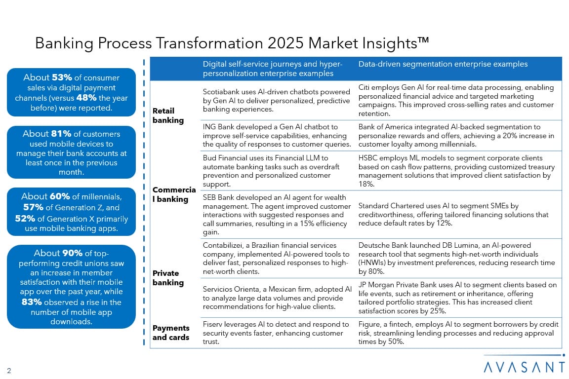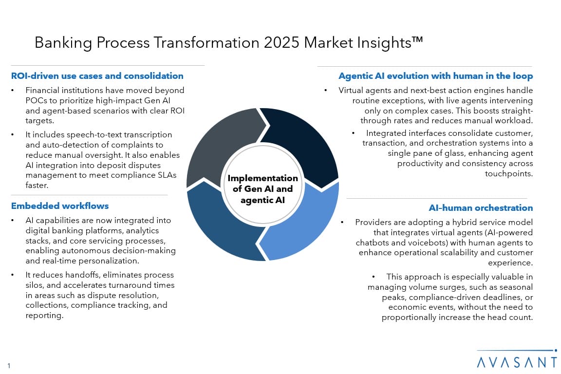 Read the Research Byte based on this report. Please refer to Avasant’s Banking Process Transformation 2025 RadarView™ for detailed insights on service providers and supply-side trends.