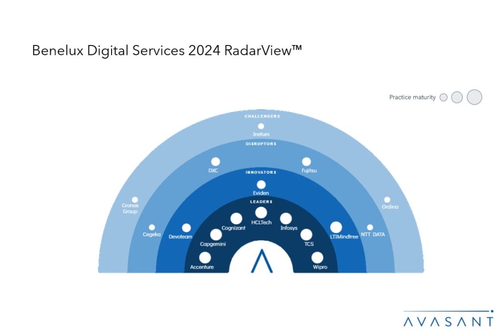 The Benelux Digital Services 2024 RadarView™ highlights key supply-side trends in the Benelux region and Avasant’s viewpoint on them. It aids Benelux-based companies in identifying top service providers to assist them in their digital transformation initiatives. It also analyzes each service provider’s capabilities in technology and delivery support, enabling organizations to identify the right strategic partners.