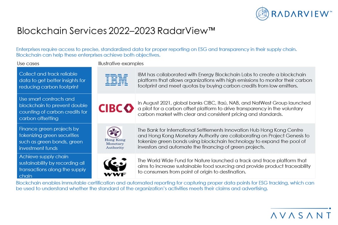 • Enterprises are increasingly using blockchain for ESG applications and related use cases