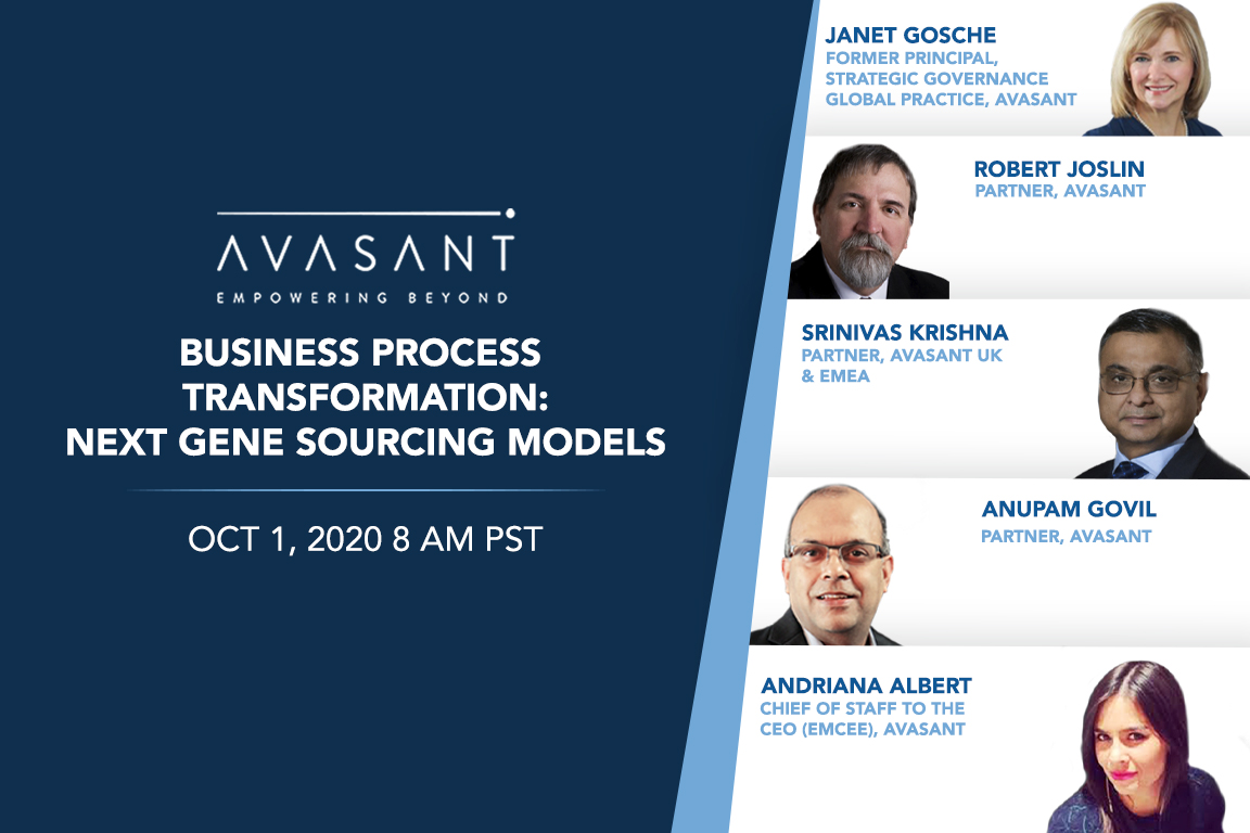 Avasant’s BPM Leadership team explores the latest trends in Business Process Transformation. As digital technologies, platforms and automation radically re-shape the BPM landscape, it’s more important than ever to focus on business outcomes and strategic alignment. Avasant leaders shared anecdotes and insights from real client engagements.