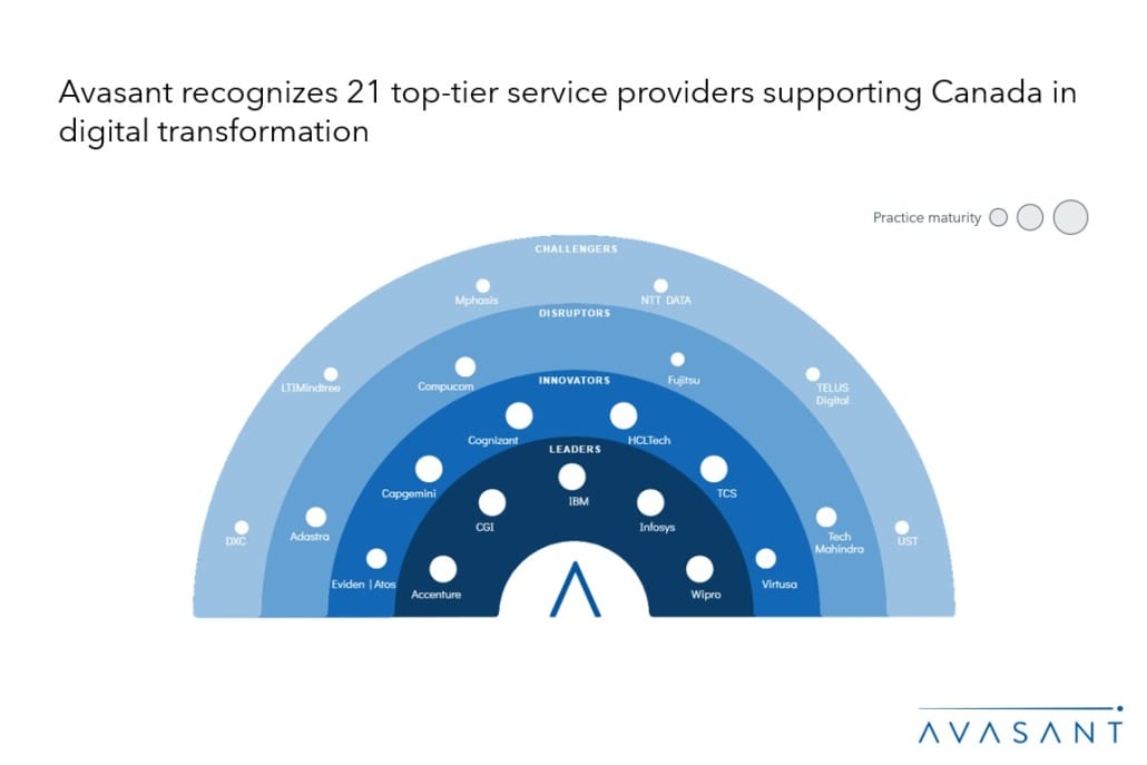 Both demand-side and supply-side trends are covered in our Canada Digital Services 2024 Market Insights™ and Canada Digital Services 2024 RadarView™, respectively. These reports present a comprehensive study of digital service providers in Canada, including top trends, analysis, and recommendations. It takes a close look at the leaders, innovators, disruptors, and challengers in this market.