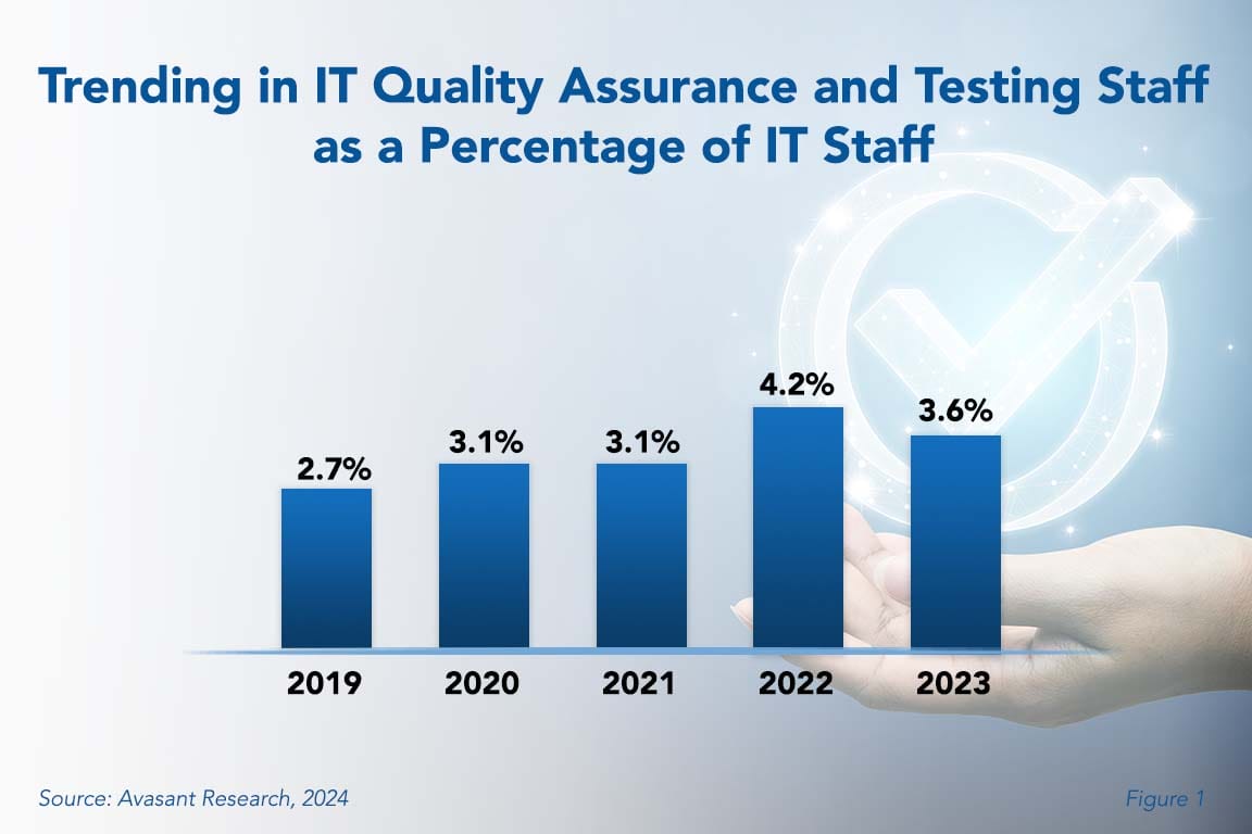 The traditional IT position dedicated exclusively to quality assurance and testing (QA) is most likely a dying breed. With waterfall software development being replaced by iterative approaches such as agile, QA is getting rolled into other job positions. QA personnel have been a small percentage of the IT staff for several years now, and we do not expect that to change any time soon. Still, the QA role is vital, and organizations need to get their staffing right wherever the function is performed.