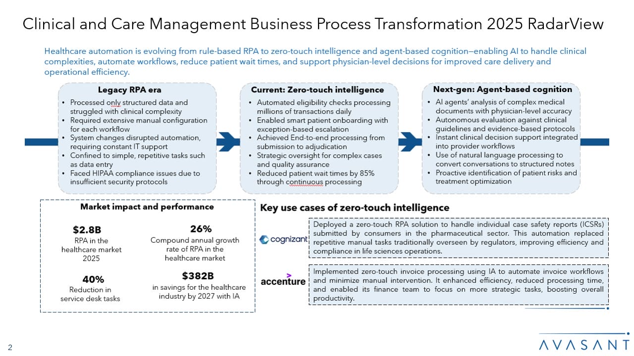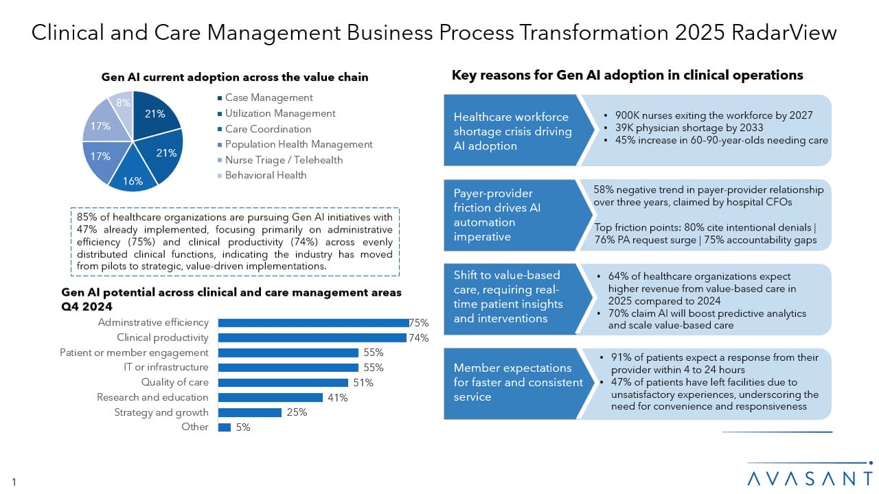 Read the Research Byte based on this report. Please refer to Avasant’s Clinical and Care Management Business Process Transformation 2025 RadarView™ for detailed insights on service providers and supply-side trends.