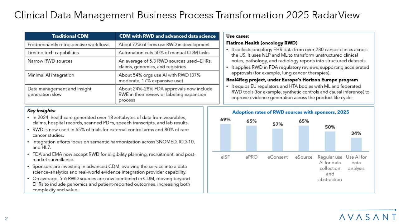 Read the Research Byte based on this report. Please refer to Avasant’s Clinical Data Management Business Process Transformation 2025 RadarView™ for detailed insights on service providers and supply-side trends.