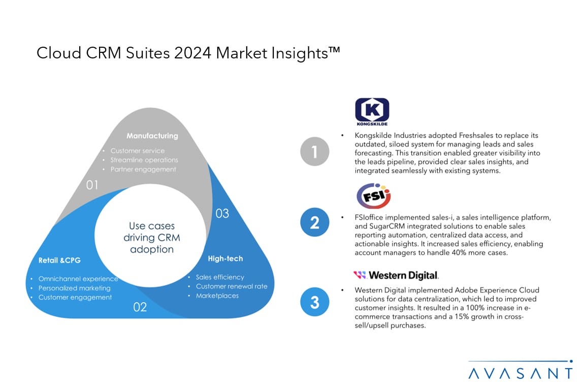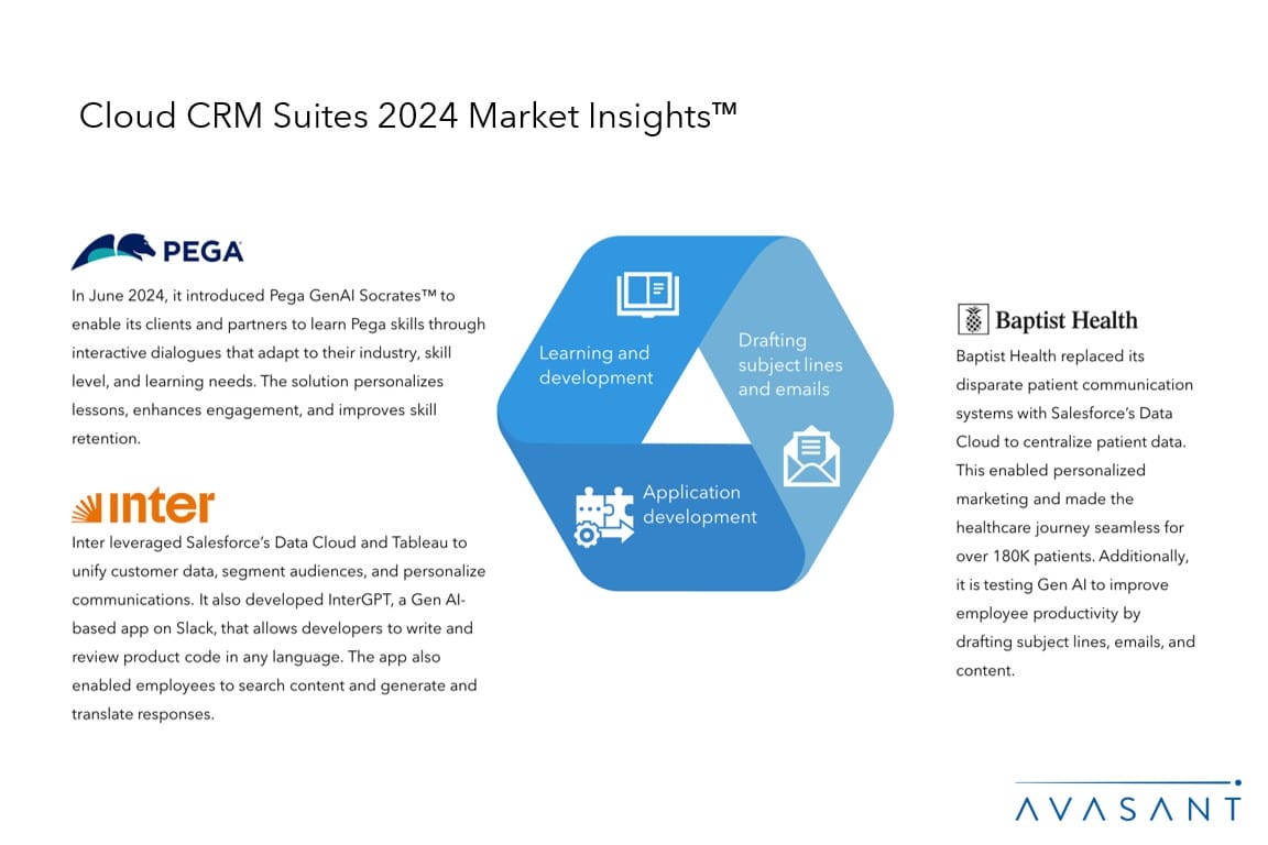 Enterprises are increasingly adopting customer relationship management (CRM) suites to enhance sales team productivity, improve customer service efficiency, and drive revenue growth through upselling and cross-selling opportunities. To achieve centralized data access and actionable insights, companies are replacing outdated, siloed systems with cloud-based CRM solutions, thereby improving lead management, sales efficiency, and customer engagement. Furthermore, organizations are leveraging generative AI to draft emails, enhance developer productivity, and support learning and development, which centralizes patient data and personalizes communications, ultimately leading to more efficient and effective business operations.