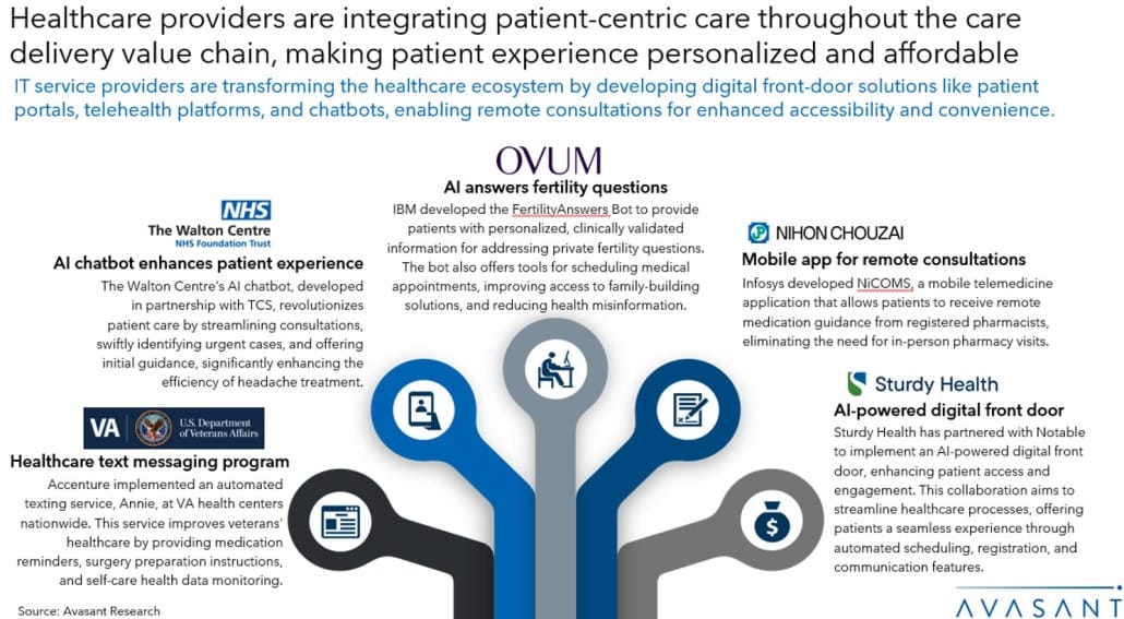 Cognizant is transforming remote healthcare delivery through hospital-at-home models, predictive maintenance tools, and integrating diagnostic devices, such as dermatoscopes and otoscopes, enabling real-time, accurate care. These advancements improve access for underserved regions, reduce unnecessary hospital visits, and ensure patients receive seamless, personalized treatment. Its innovation hubs further drive progress in drug discovery and diagnostics, delivering cutting-edge solutions faster. The Healthcare Provider Digital Services 2024 RadarView™ reveals that around 60% of service providers are enhancing remote healthcare delivery and patient experience by supporting enterprises with chatbots and telehealth platforms.