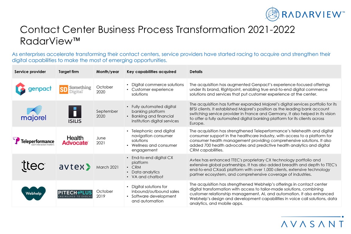 Contact Center Business Process Transformation 2021– 2022 RadarView™