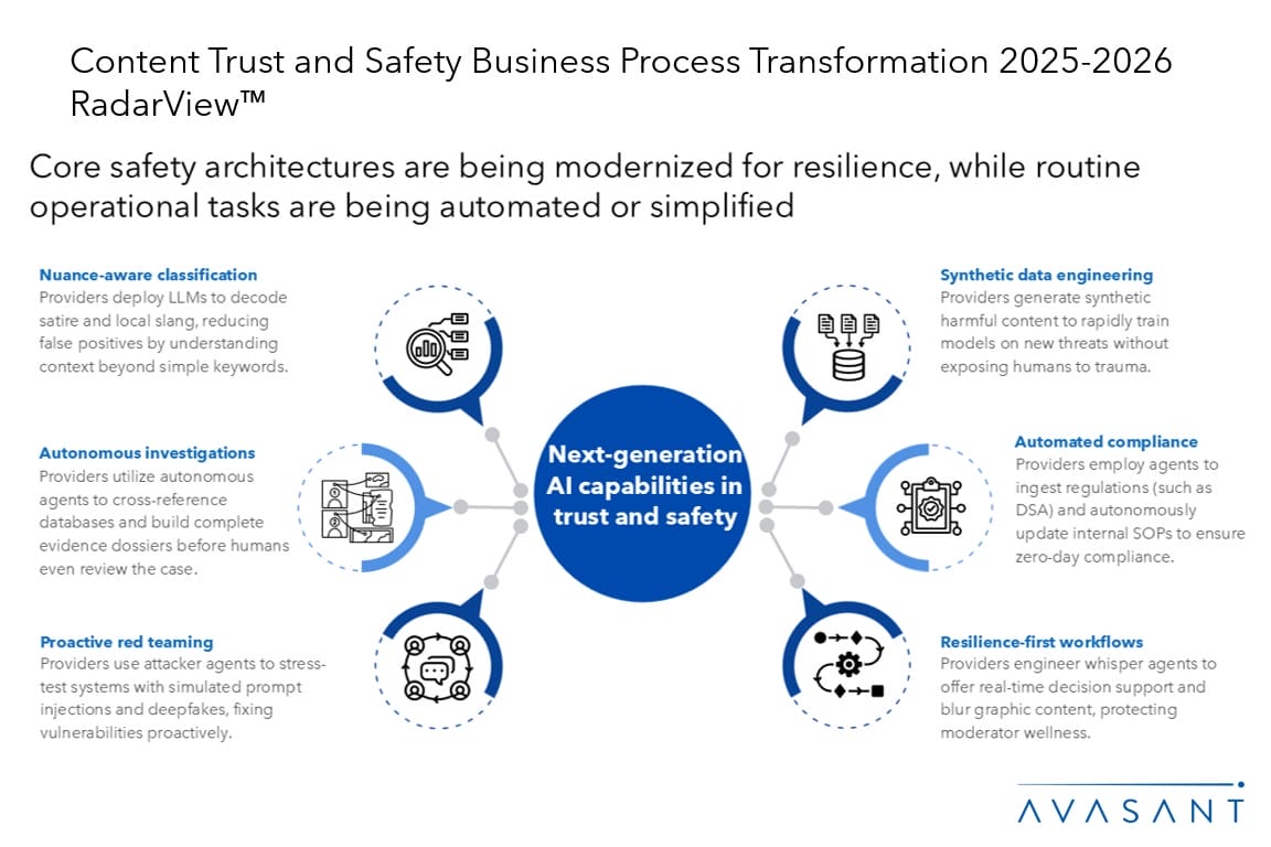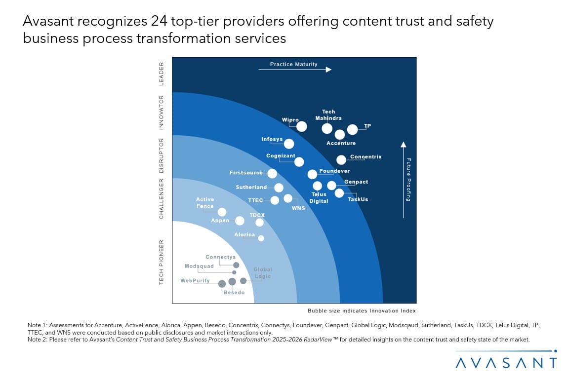Read the Research Byte based on this report. Please refer to Avasant’s Content Trust and Safety Business Process Transformation 2025-2026 Market Insights™ for demand-side trends.