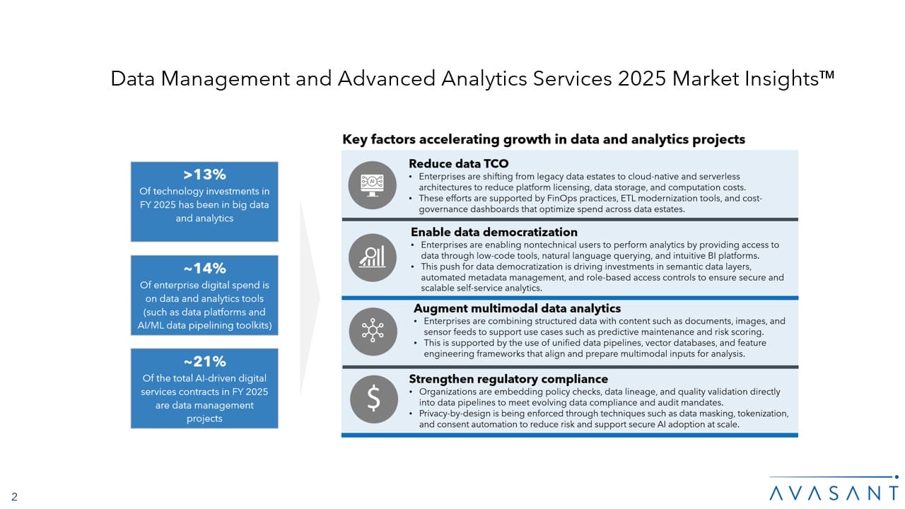 Read the Research Byte based on this report. Please refer to Avasant’s Data Management and Advanced Analytics Services 2025 RadarView™ for detailed insights on the service providers and supply-side trends.