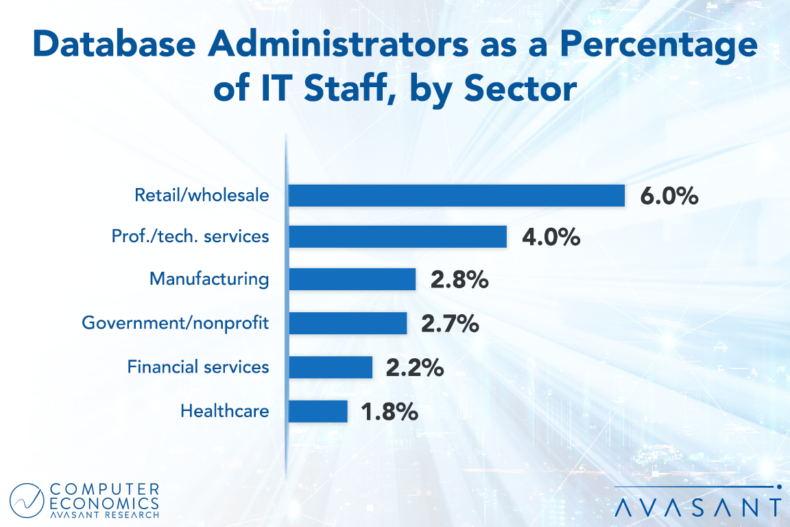 As enterprises collect more data and connect more applications, they must ensure that data is secure, reliable, and accessible. But despite these increased demands, companies are restraining the growth in their database administration staff. This report helps IT managers determine whether they are keeping pace with industry standards by providing four benchmarks: database administrators (DBAs) as a percentage of the IT staff, DBAs as a percentage of the Data Center Group, users per DBA, and business applications per DBA. We present benchmarks for small, midsize, and large organizations and examine the influence by sector on these benchmarks. We conclude with best practices for optimizing DBA staffing. (12 pp., 7 fig.)