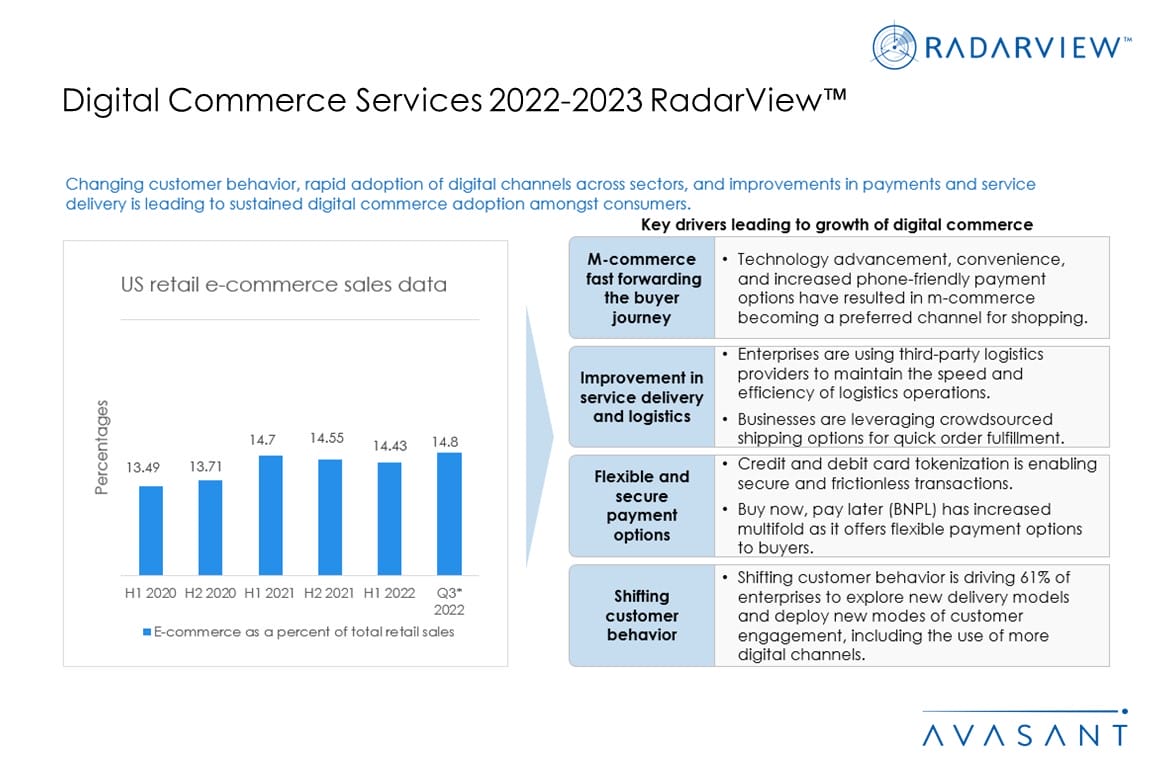 This RadarView offers enterprises a view into the changing landscape of digital and traditional commerce. It begins with a summary of key trends in the market shaping the enterprise commerce function.