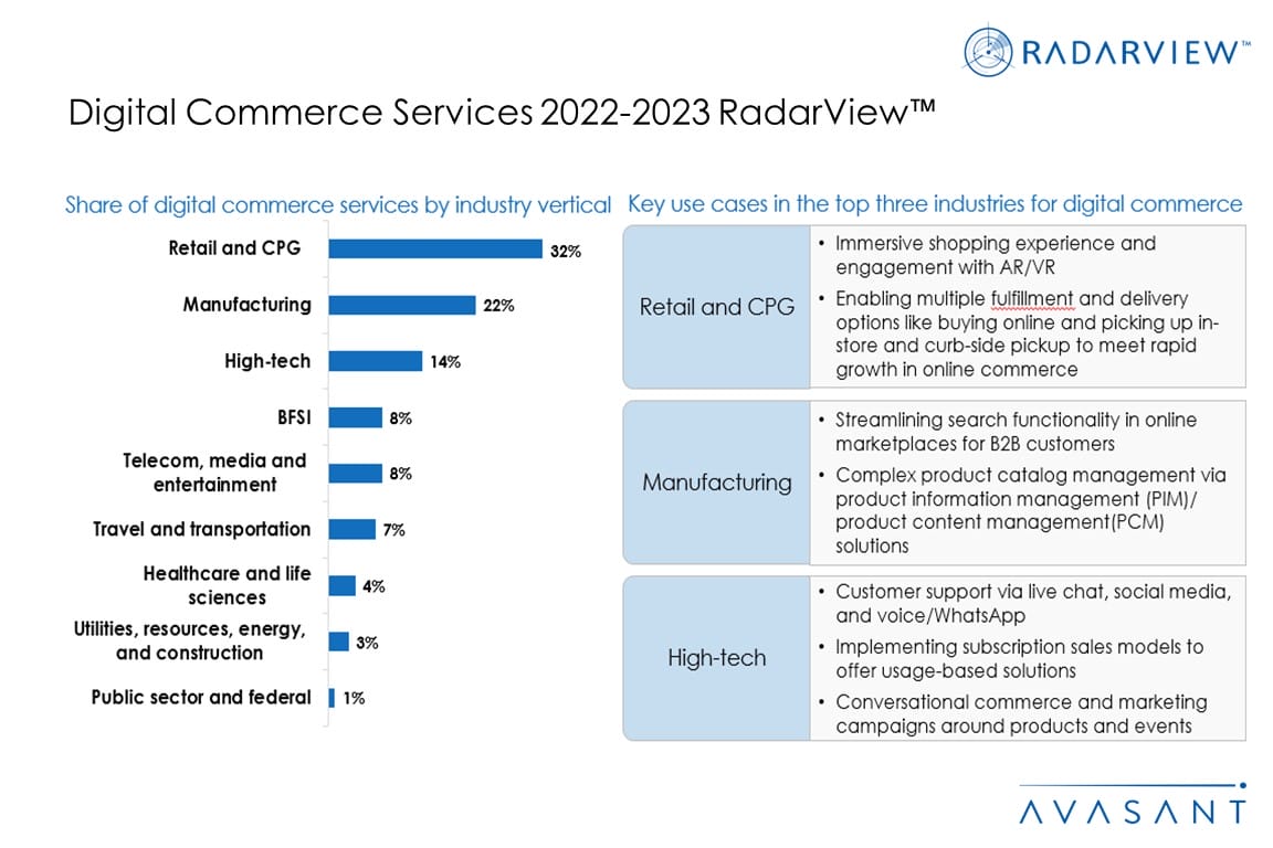 Digital commerce remains attractive to consumers due in a large part to the growth of digital channels and improvements in payment and service delivery. Enterprises would like to expand that success to B2B. For B2C and B2B customers, personalization has become a major differentiator, and service providers are helping enterprises deploy integrated digital commerce solutions. This resulted in an increase of 31% in service providers’ revenue for digital commerce services in 2021–2022.