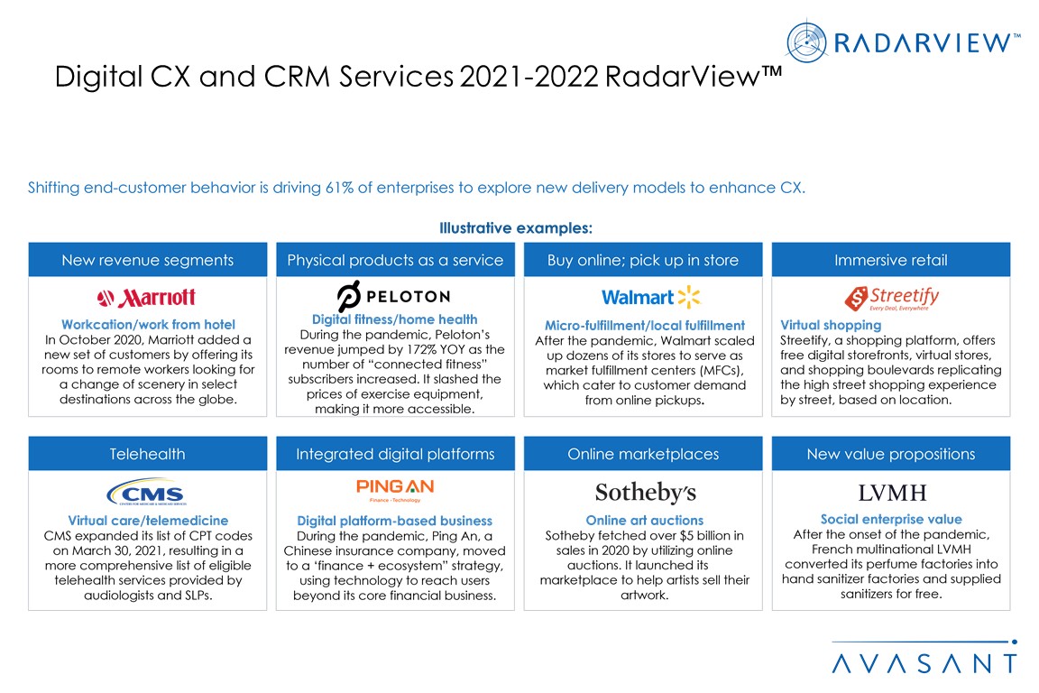 With consumer behavior changing rapidly and the next wave of digitalization impacting customer-facing functions, more companies are exploring new business and delivery models to serve customers. Adapting customer experience with the new normal of the post-COVID-19 world has become critical for enterprises to enable customer engagement models of tomorrow.