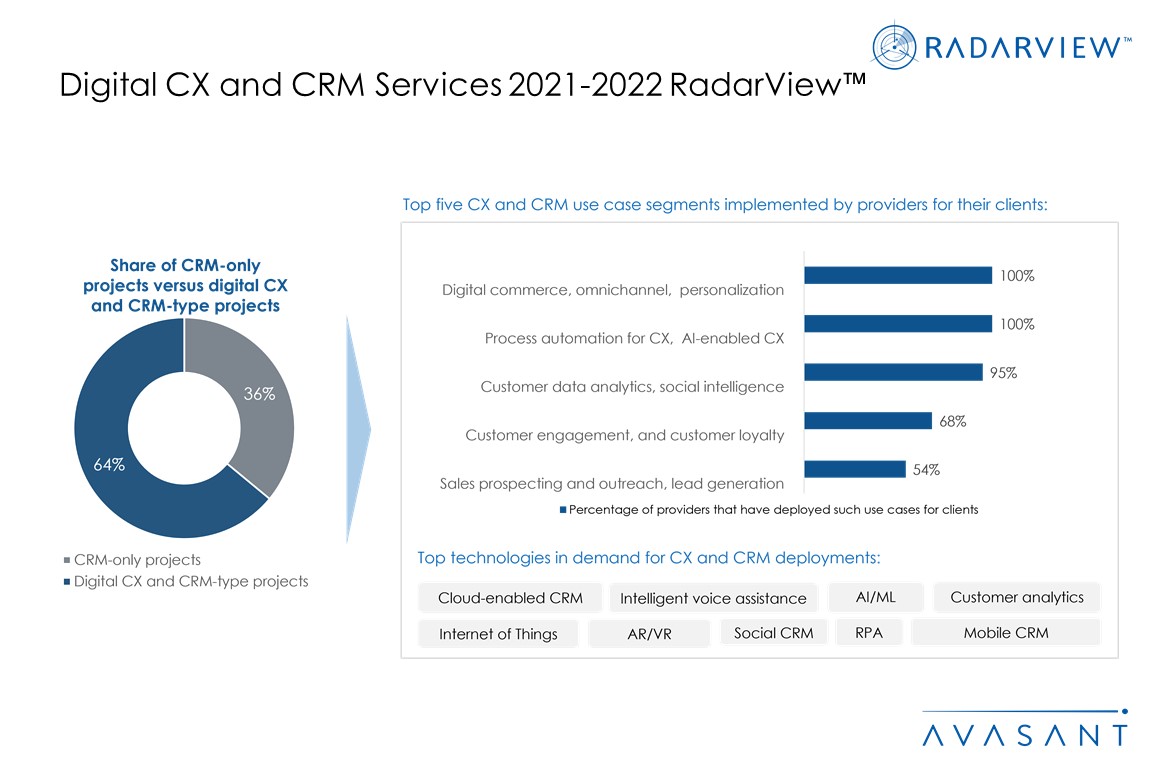 This RadarView helps companies use digital CX and CRM technologies to reinvent their customer relationships and strategies and drive their digital transformation. It also provides information to assist businesses in choosing the right digital CX and CRM service provider.