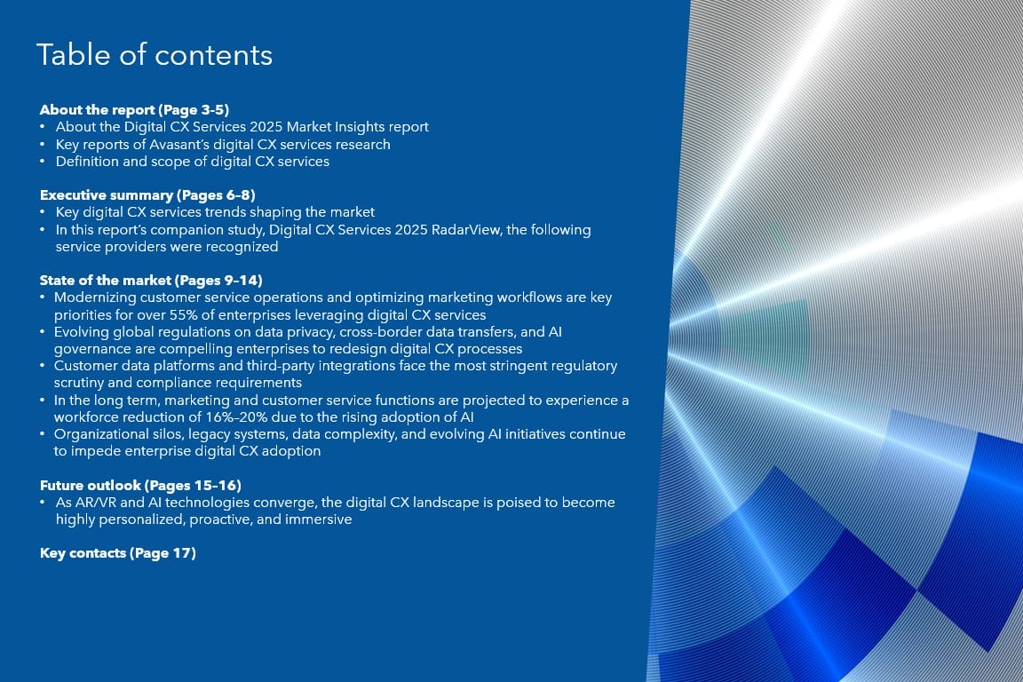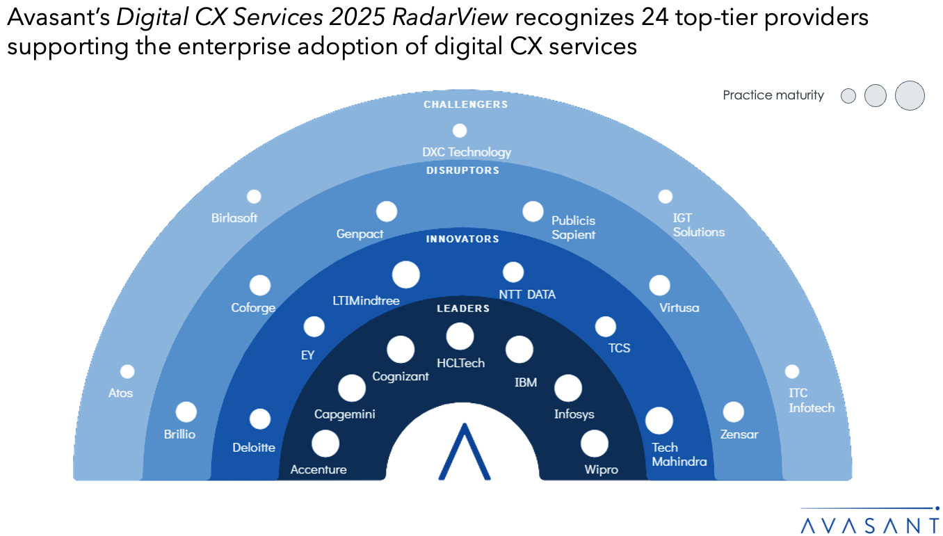 Read the Research Byte based on this report. Please refer to Avasant’s Digital CX Services 2025 RadarView™ for detailed insights on the service providers and supply-side trends.