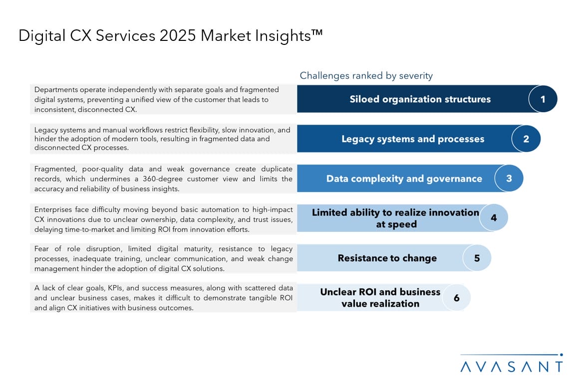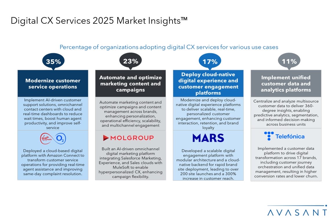 This report explores how enterprises are transforming digital CX by leveraging AI-driven customer service solutions and cloud-native digital experience platforms for scalable, personalized, and real-time customer engagement. It examines the implications of evolving data privacy and AI governance regulations, which are driving enterprises to redesign CX processes to ensure compliance and transparency. In addition, the report highlights workforce transformations resulting from AI-driven innovation, including reductions in traditional marketing and customer service roles, and a shift toward strategic, technology-focused positions. It also analyzes challenges such as legacy systems, organizational siloes, and data complexities that impede enterprise-wide adoption of CX initiatives.