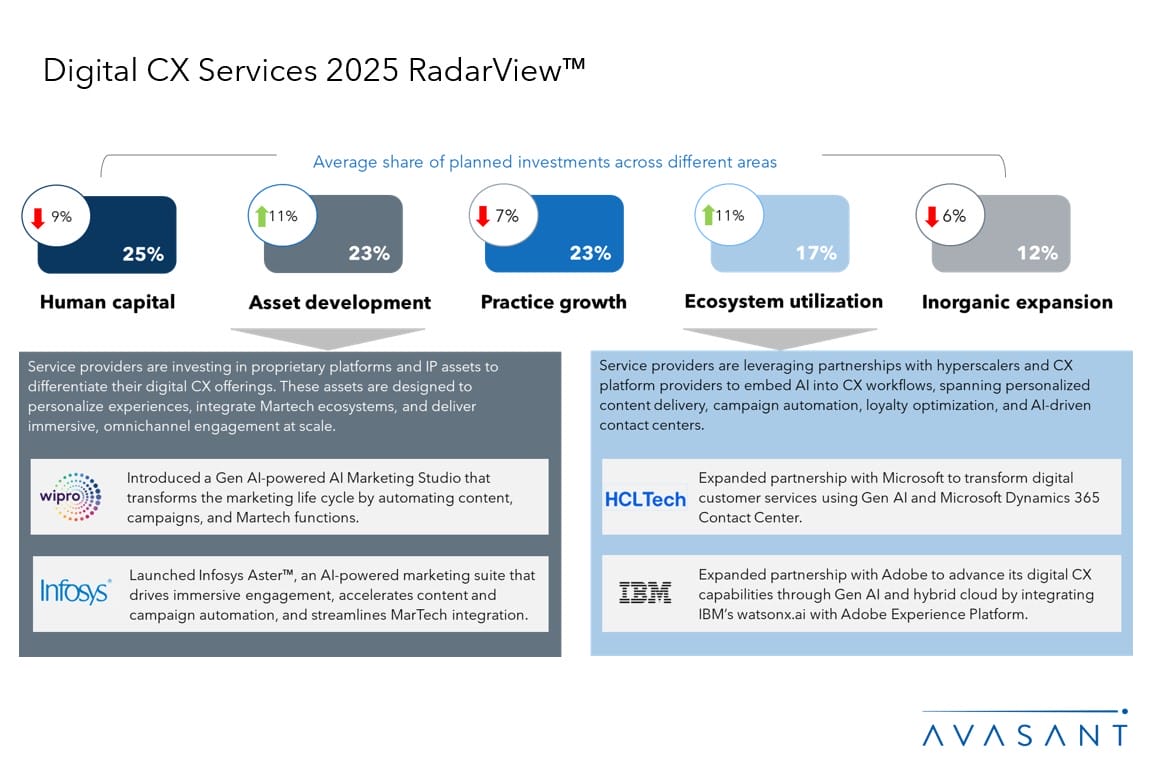 To stay competitive and address the growing enterprise need for digital CX, service providers are dedicating over 40% of their investments toward asset development and ecosystem utilization. They are leveraging agentic AI to enhance customer interactions, enable real-time issue resolution, streamline content migration and campaign launches, and accelerate sales cycles. Additionally, the outcome/gain-share pricing model is gaining momentum due to the transition toward innovation-led, AI-driven digital CX initiatives.