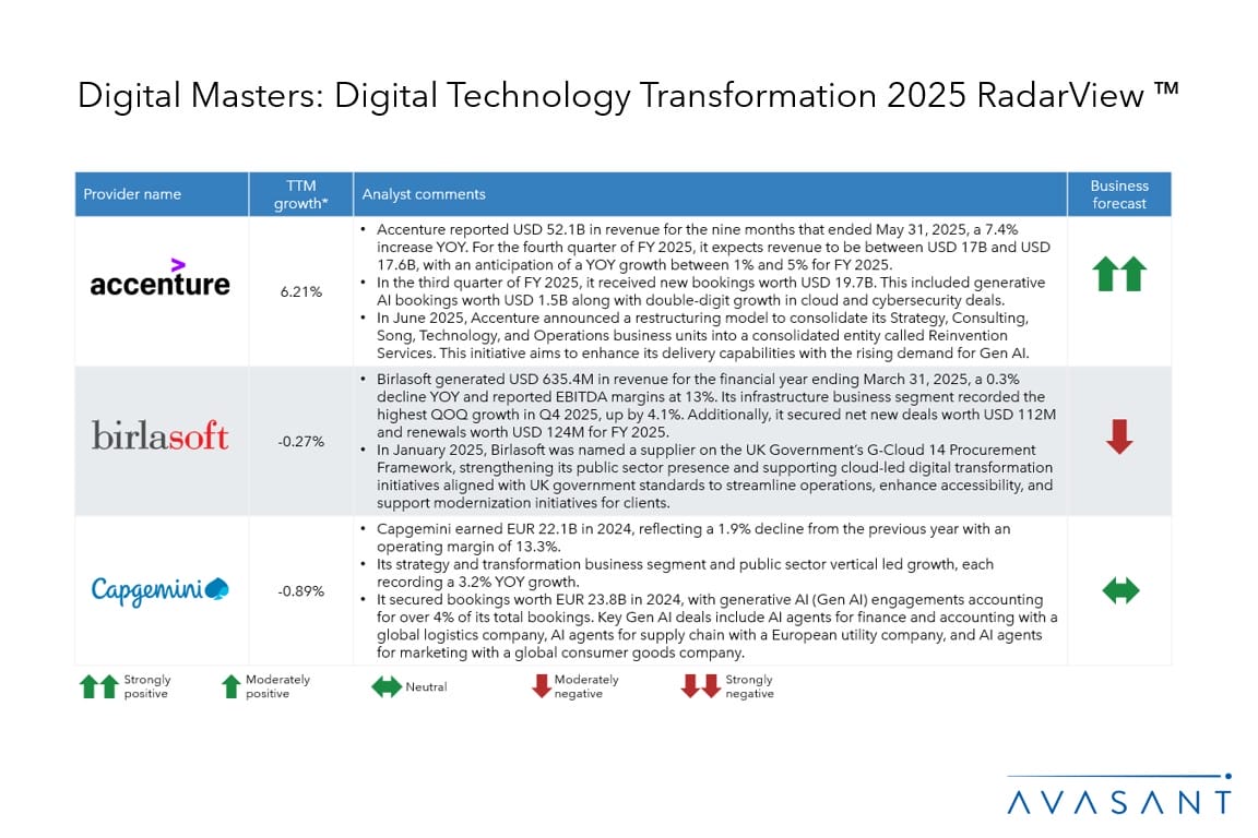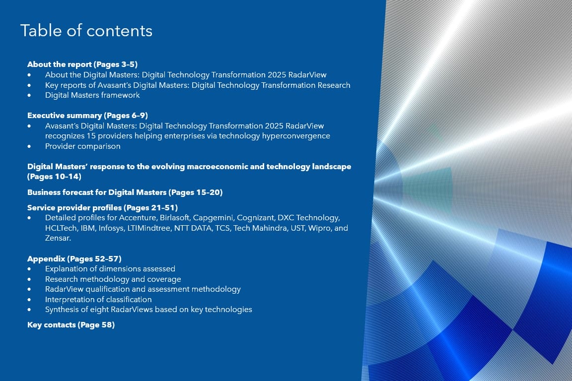 The Digital Masters: Digital Technology Transformation 2025 RadarView™ aids companies in identifying top service providers to transform their IT landscape. It also analyzes each service provider’s technology and delivery support capabilities, enabling organizations to identify the right strategic partners for their digital transformation.
