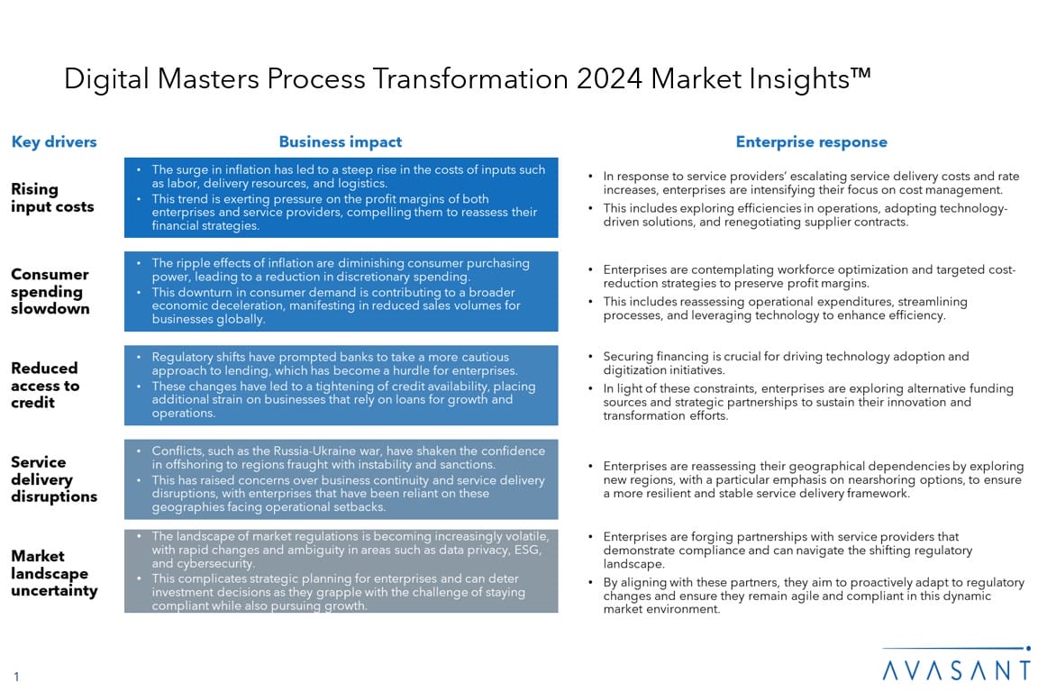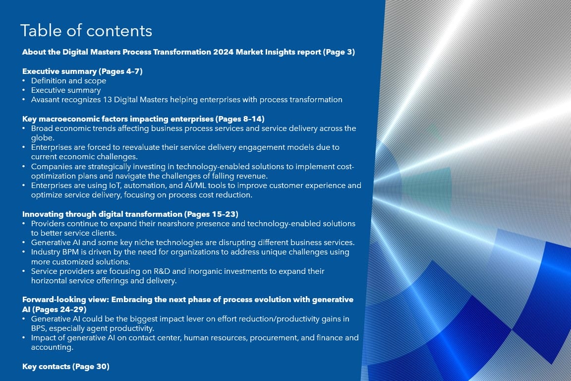Read the Research Byte based on this report. Please refer to Avasant’s Digital Masters Process Transformation 2024 RadarView™ for detailed insights on service providers and supply-side trends.