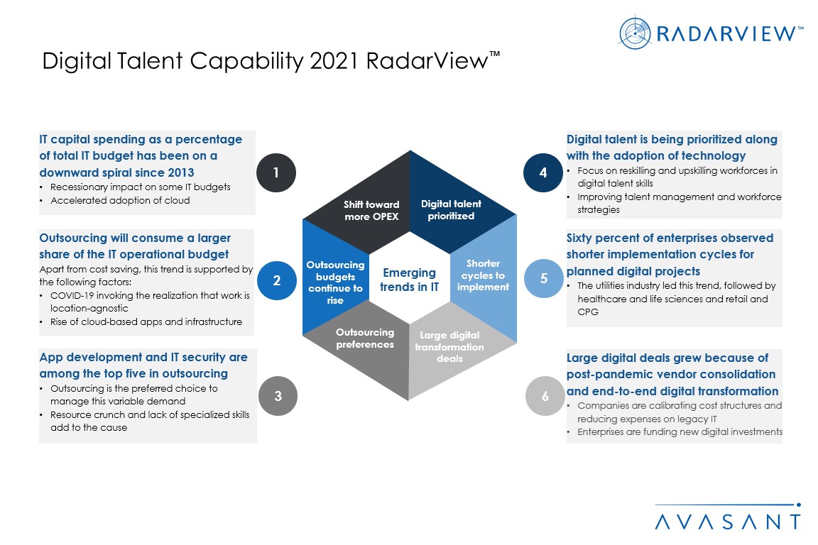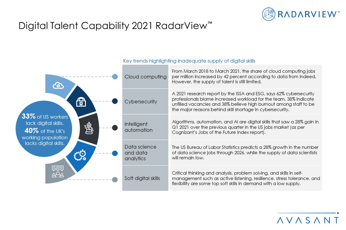 This RadarView helps companies determine the digital skills in demand and provides insight into how service providers are building a digital talent pool. It also affords detailed information to assist businesses in identifying the right services provider that can drive digital transformation.