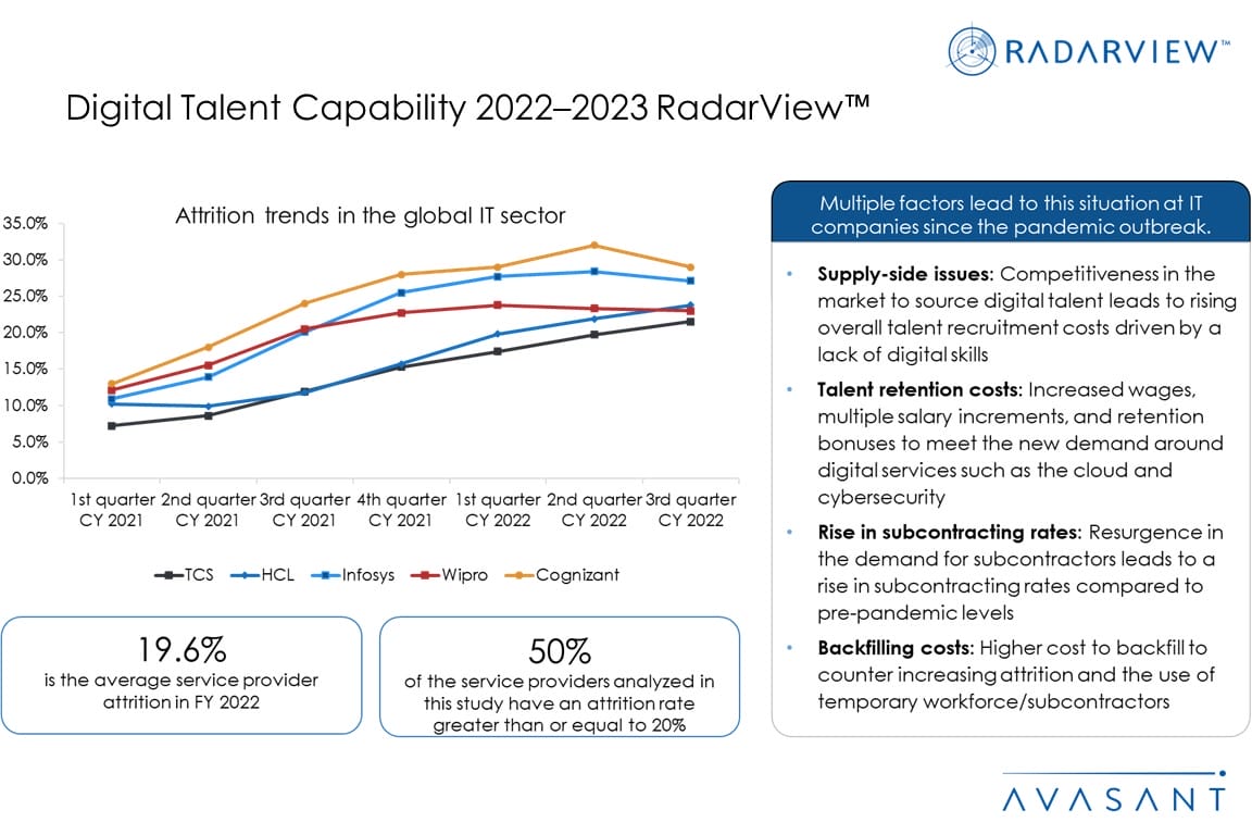 The Digital Talent Capability 2022–2023 RadarView™ helps companies determine the digital skills in demand and provides them insights into how service providers are building a digital talent pool. It also offers detailed information to assist businesses in identifying the right service provider that can drive digital transformation.